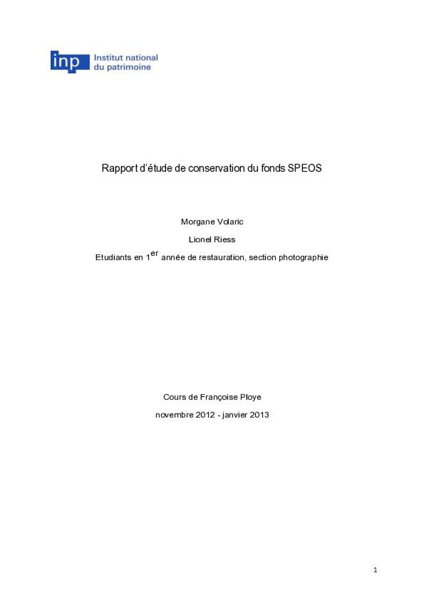Rapport d'étude de conservation du fonds SPEOS [Pas de n° inp]