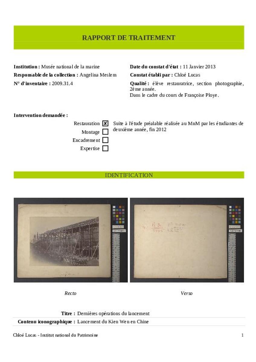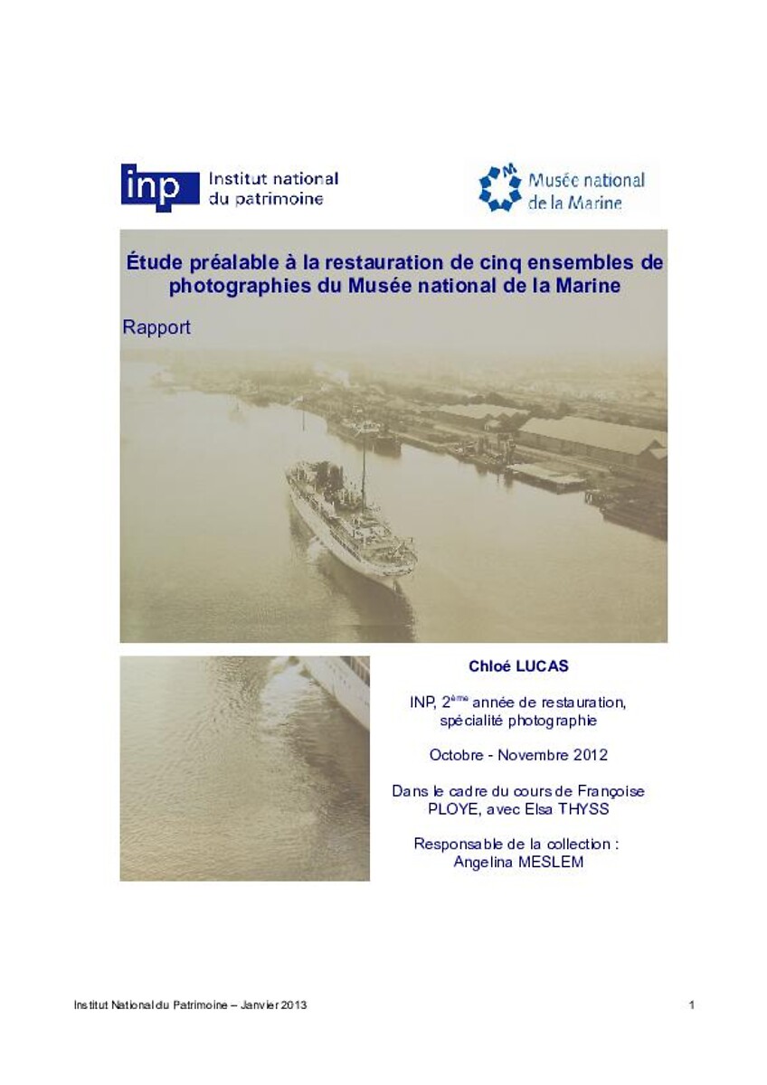 Étude préalable à la restauration de cinq ensembles de photographies du Musée national de la Marine