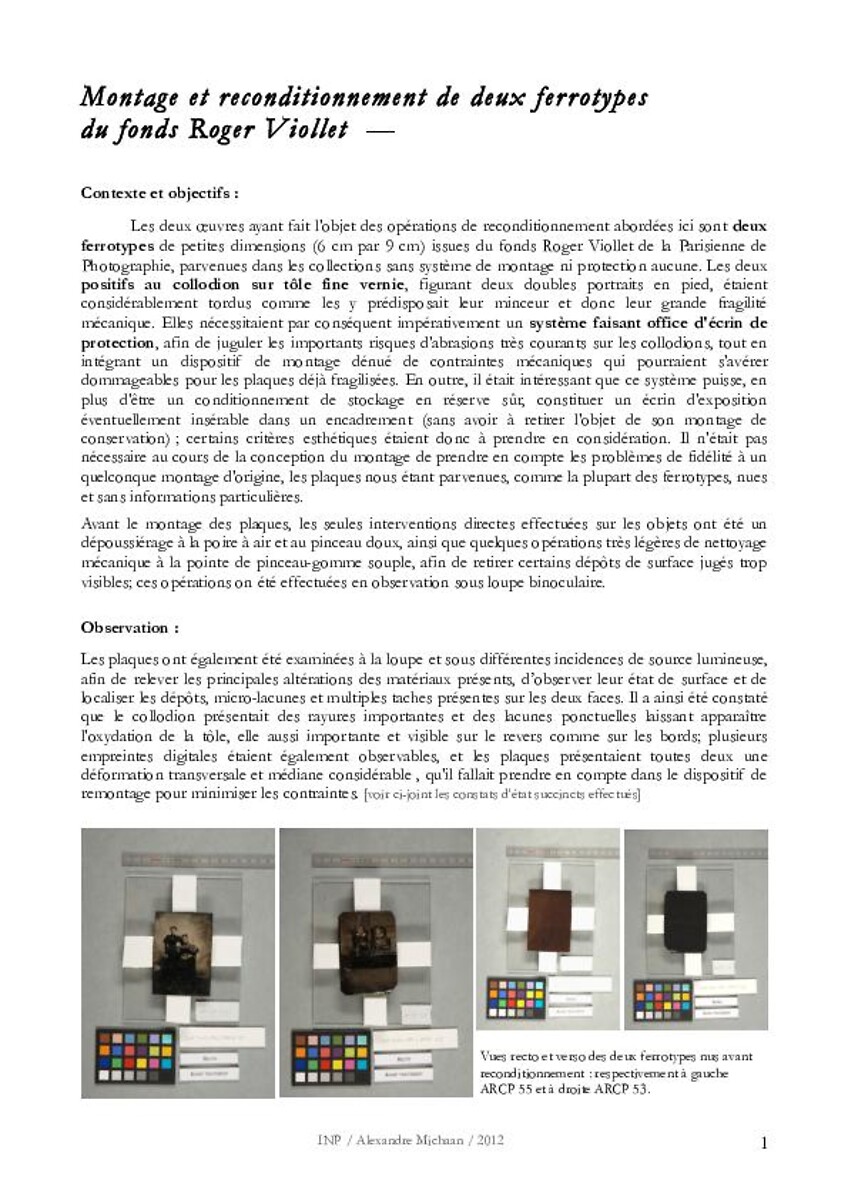 Montage et reconditionnement de deux ferrotypes du fonds Roger Viollet [Pas de n° inp]