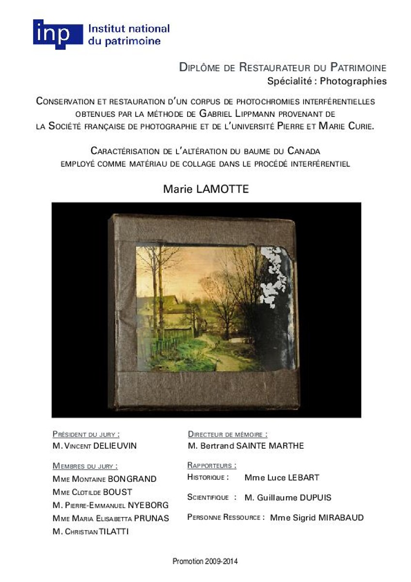 Conservation et restauration d'un corpus de photochromies interférentielles obtenues par la méthode de Gabriel Lippmann provenant de la Société Française de Photographie et de l'Université Pierre et Marie Curie : caractérisation de l'altération du baume …