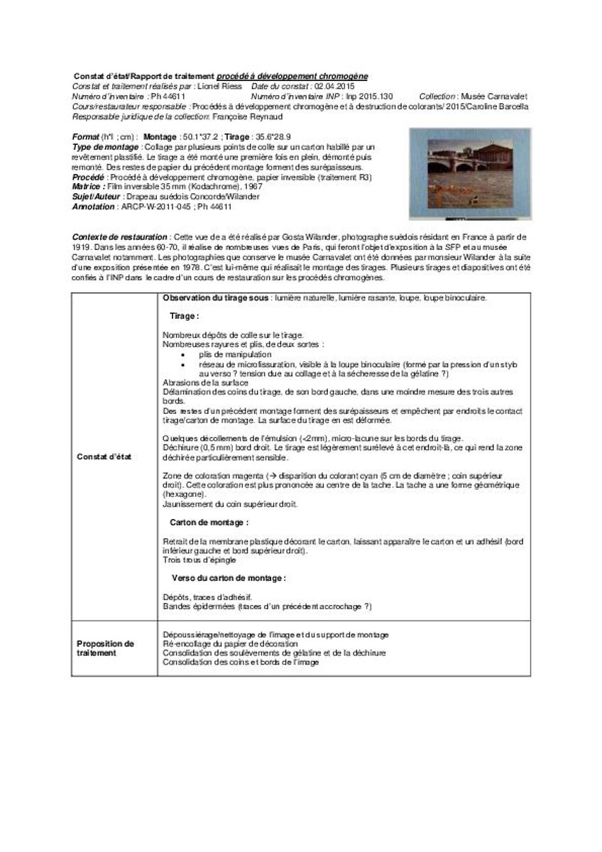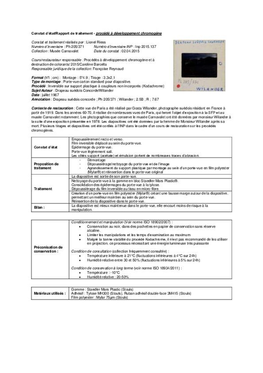 Constat d'état/Rapport de traitement - procédé à développement chromogène (Drapeau suédois)