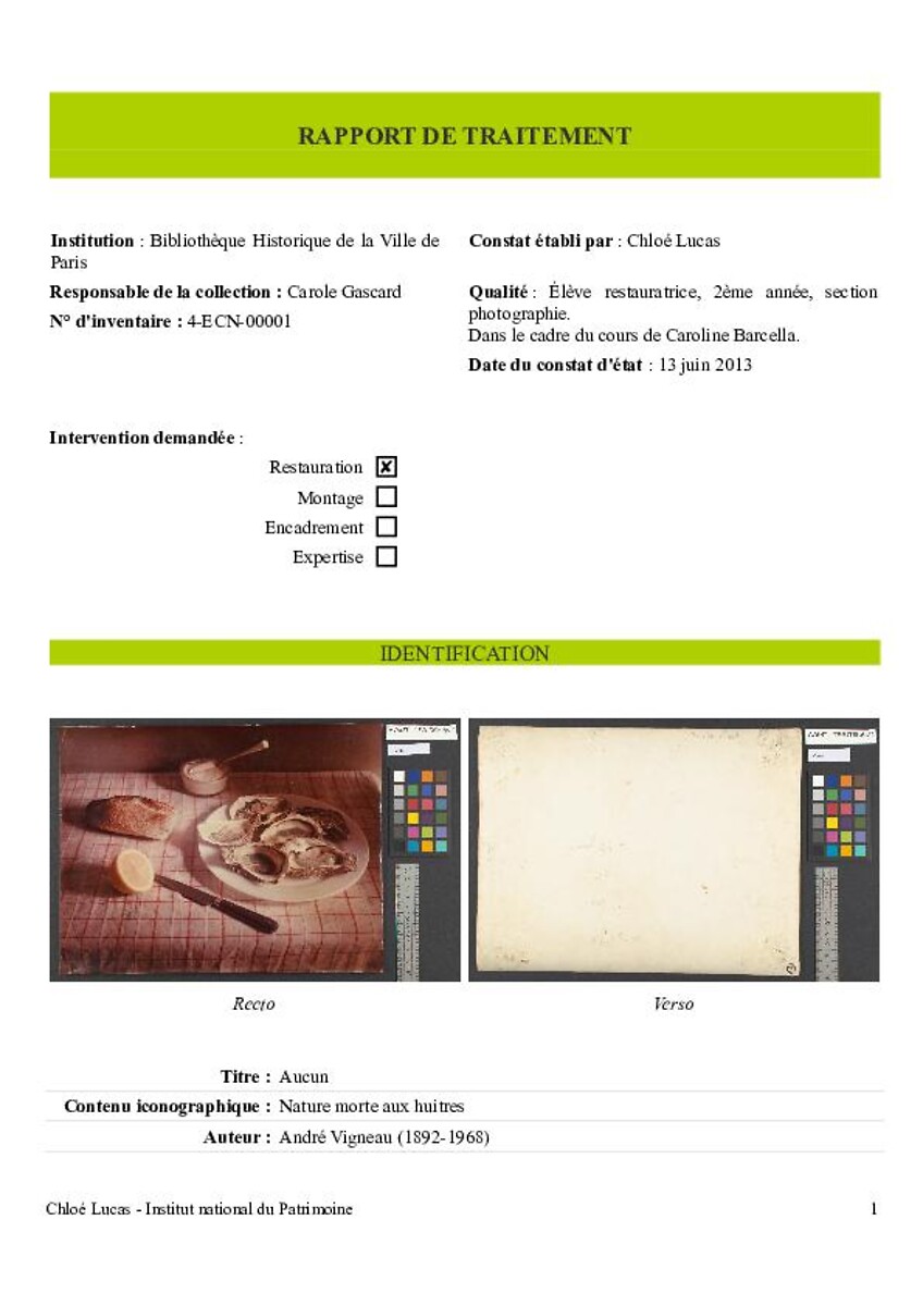 Constat d ’état et rapport de traitement (Neptunia) [INP 2012.10.2]