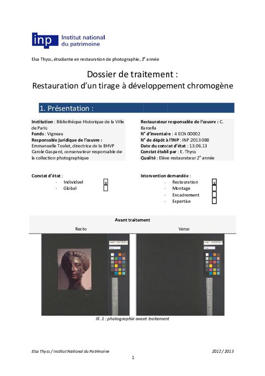 Dossier de traitement : restauration d'un tirage à développement chromogène