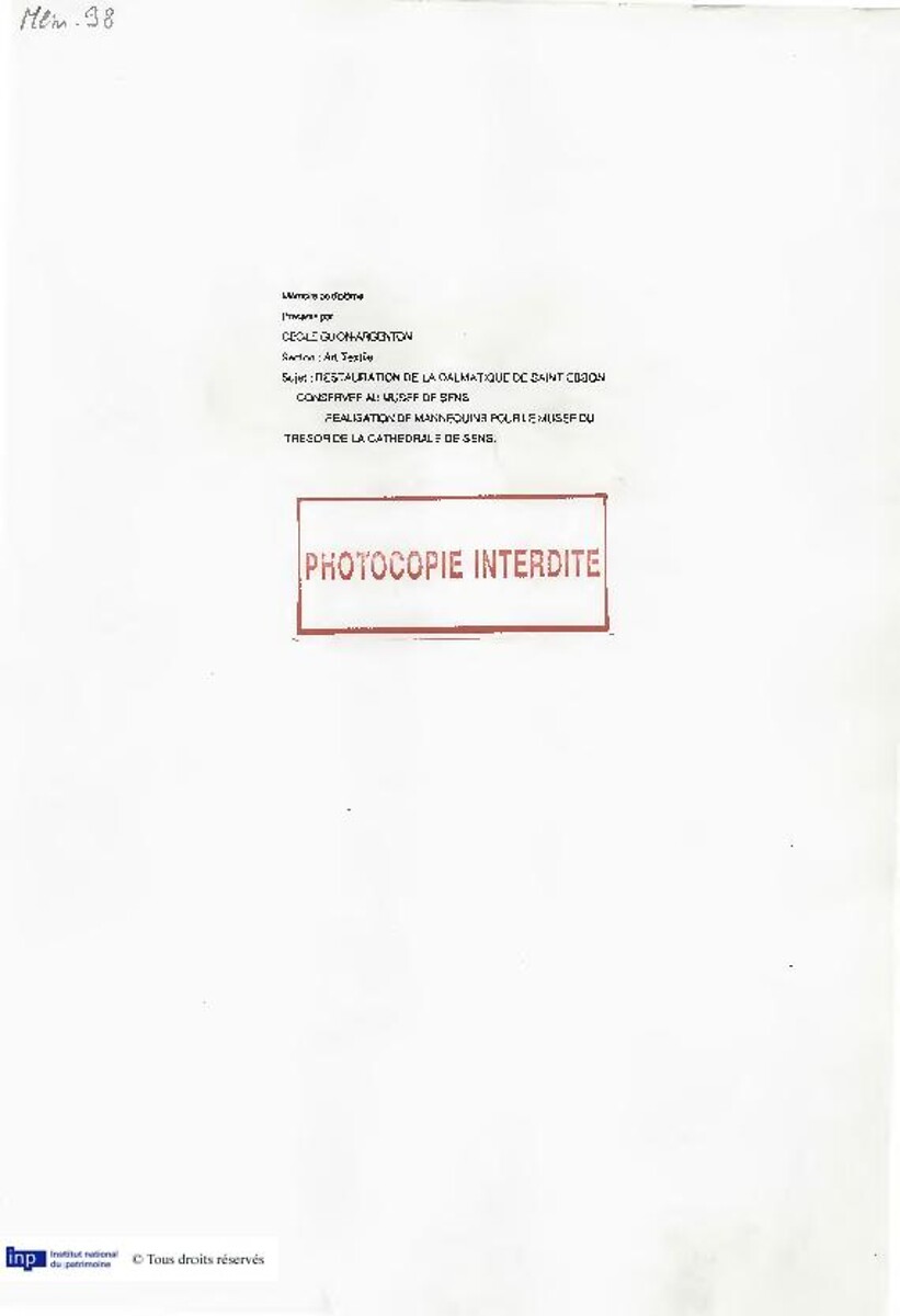Réalisation de mannequins pour le Musée du Trésor de la cathédrale de Sens : restauration de la dalmatique de Saint Ebbon conservée au Musée de Sens