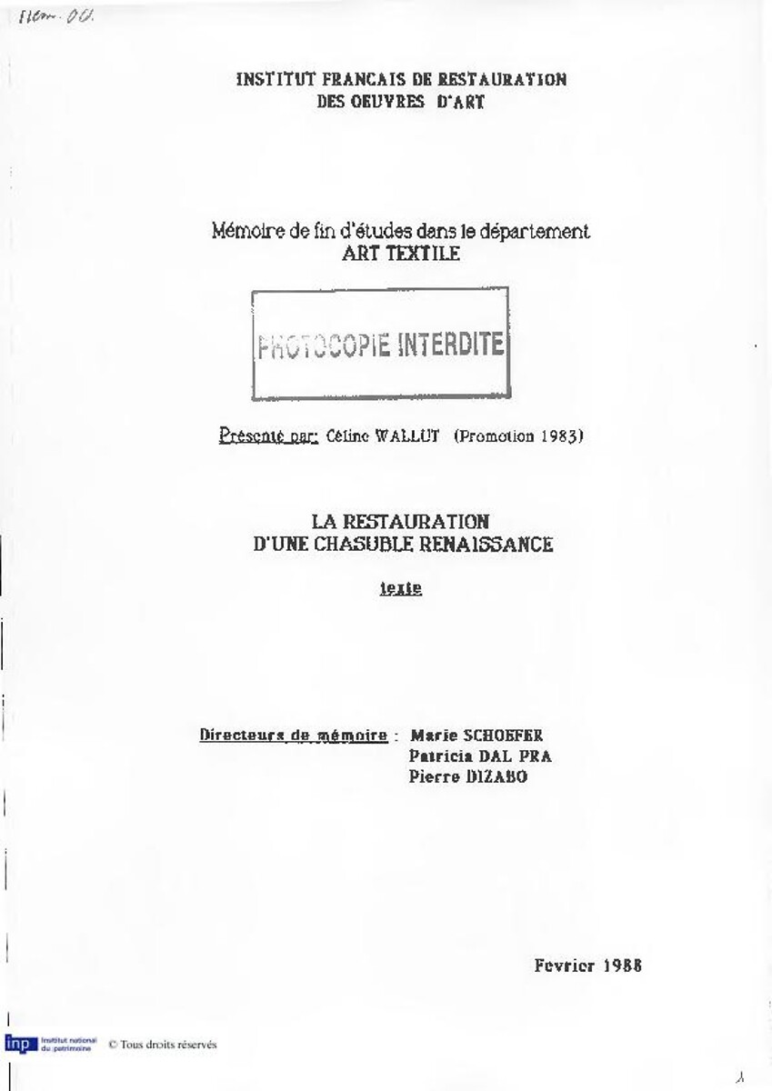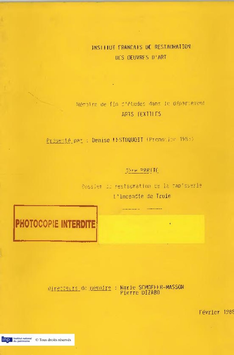 Dossier de restauration de la tapisserie « L'incendie de Troie » : étude sur la teinture