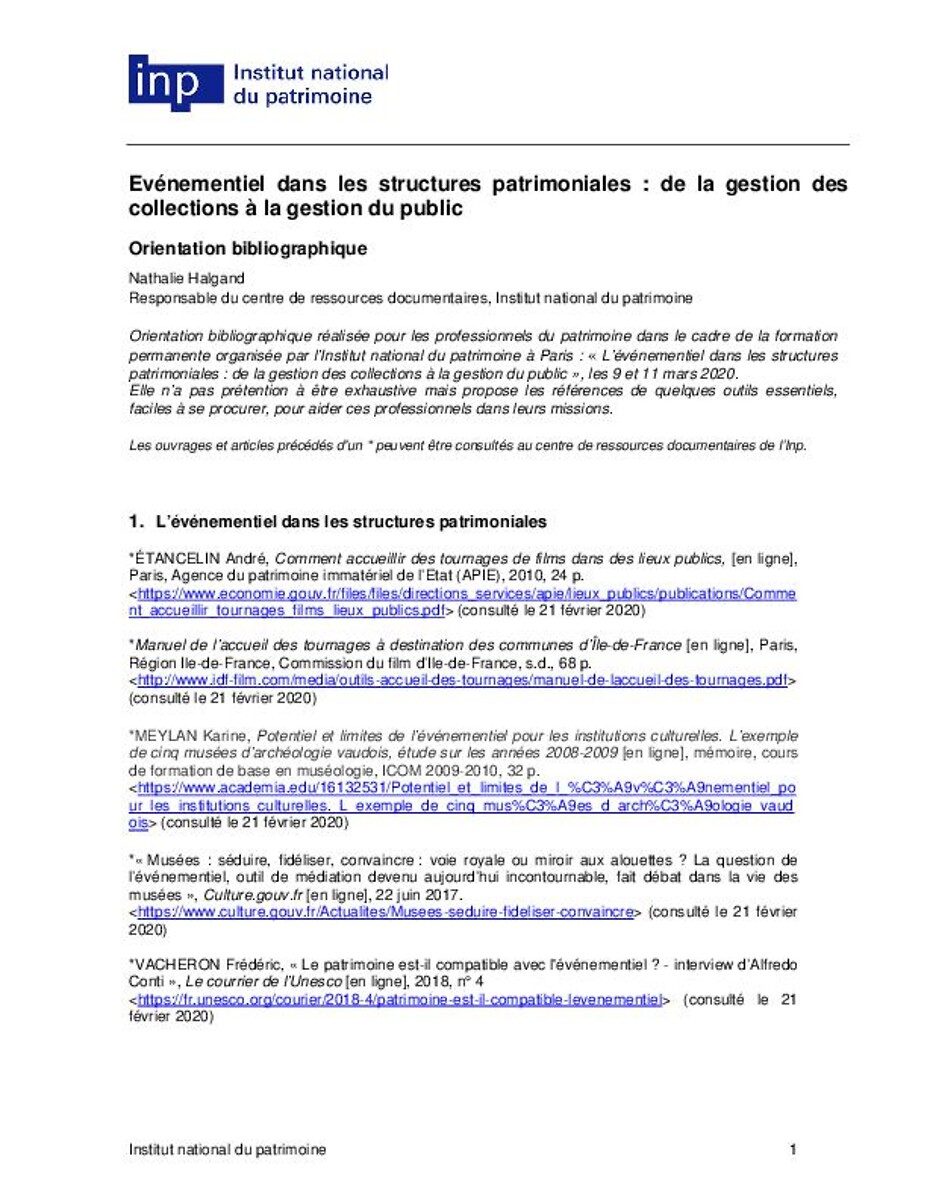 Evénementiel dans les structures patrimoniales : de la gestion des collections à la gestion du public
