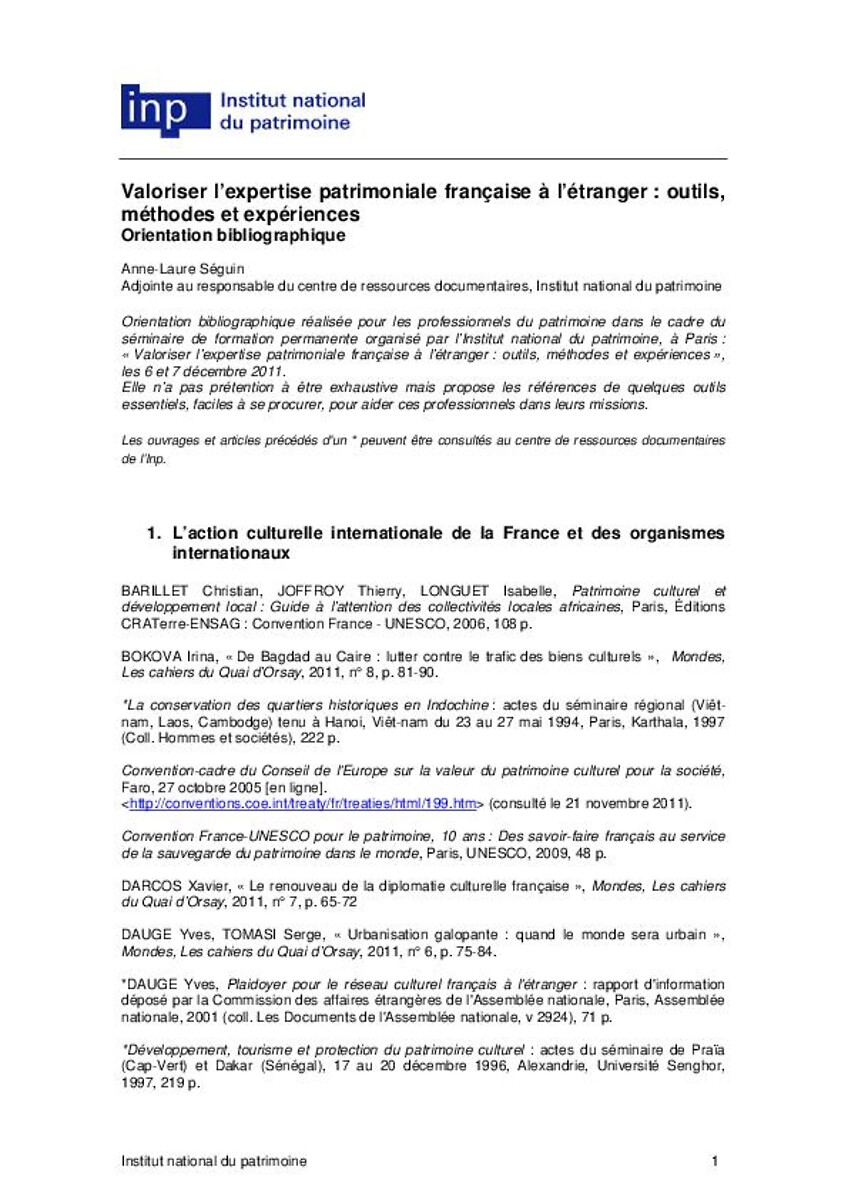 Valoriser l’expertise patrimoniale française à l’étranger : outils, méthodes et expériences