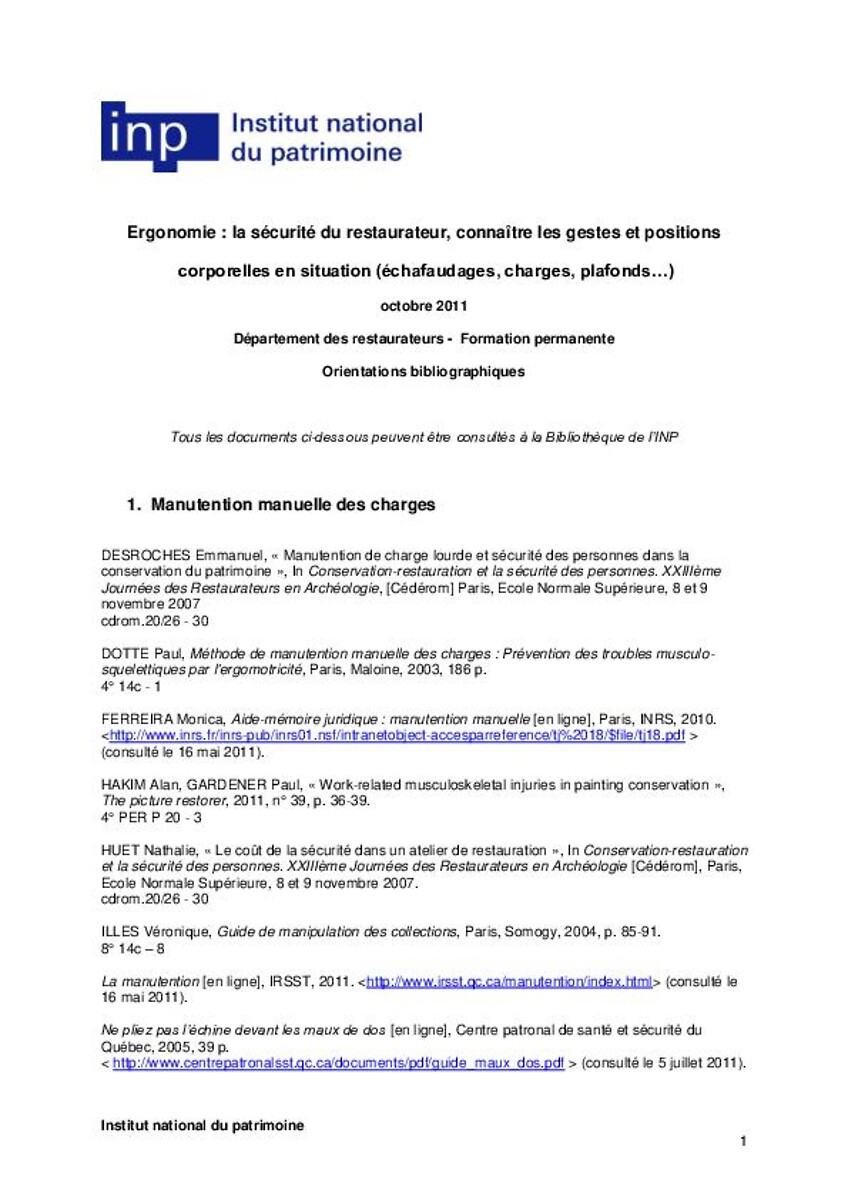 Ergonomie : la sécurité du restaurateur, connaître les gestes et positions corporelles en situation (échafaudages, charges, plafonds…)
