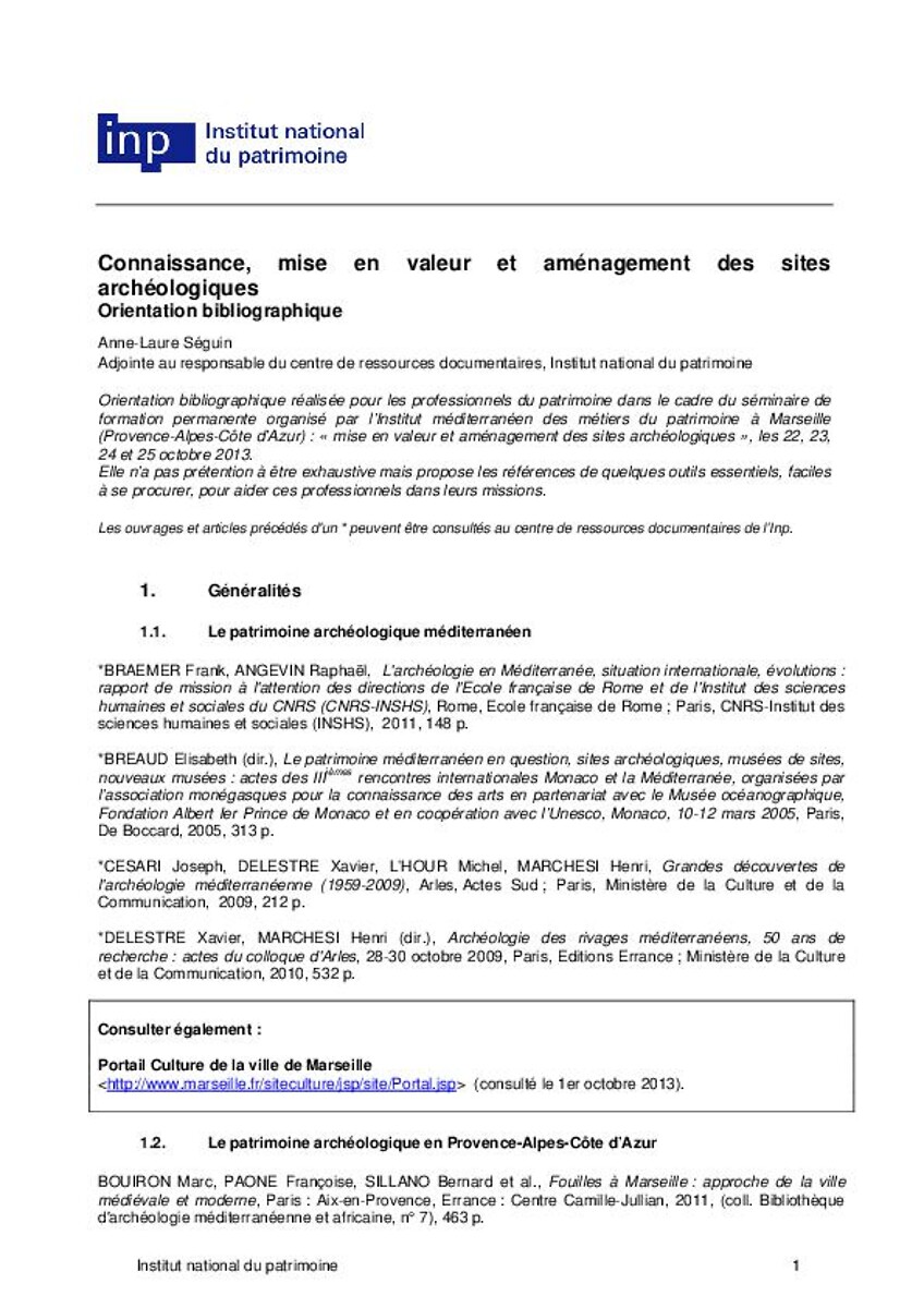 Connaissance, mise en valeur et aménagement des sites archéologiques