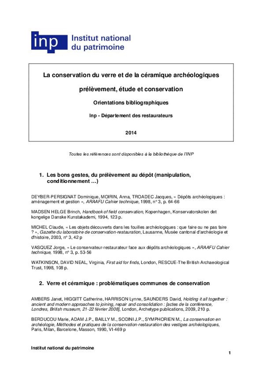 Conservation du verre et de la céramique archéologiques : prélèvement, étude et conservation