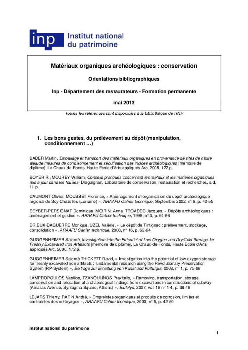 Matériaux et leur conservation : les matériaux organiques archéologiques