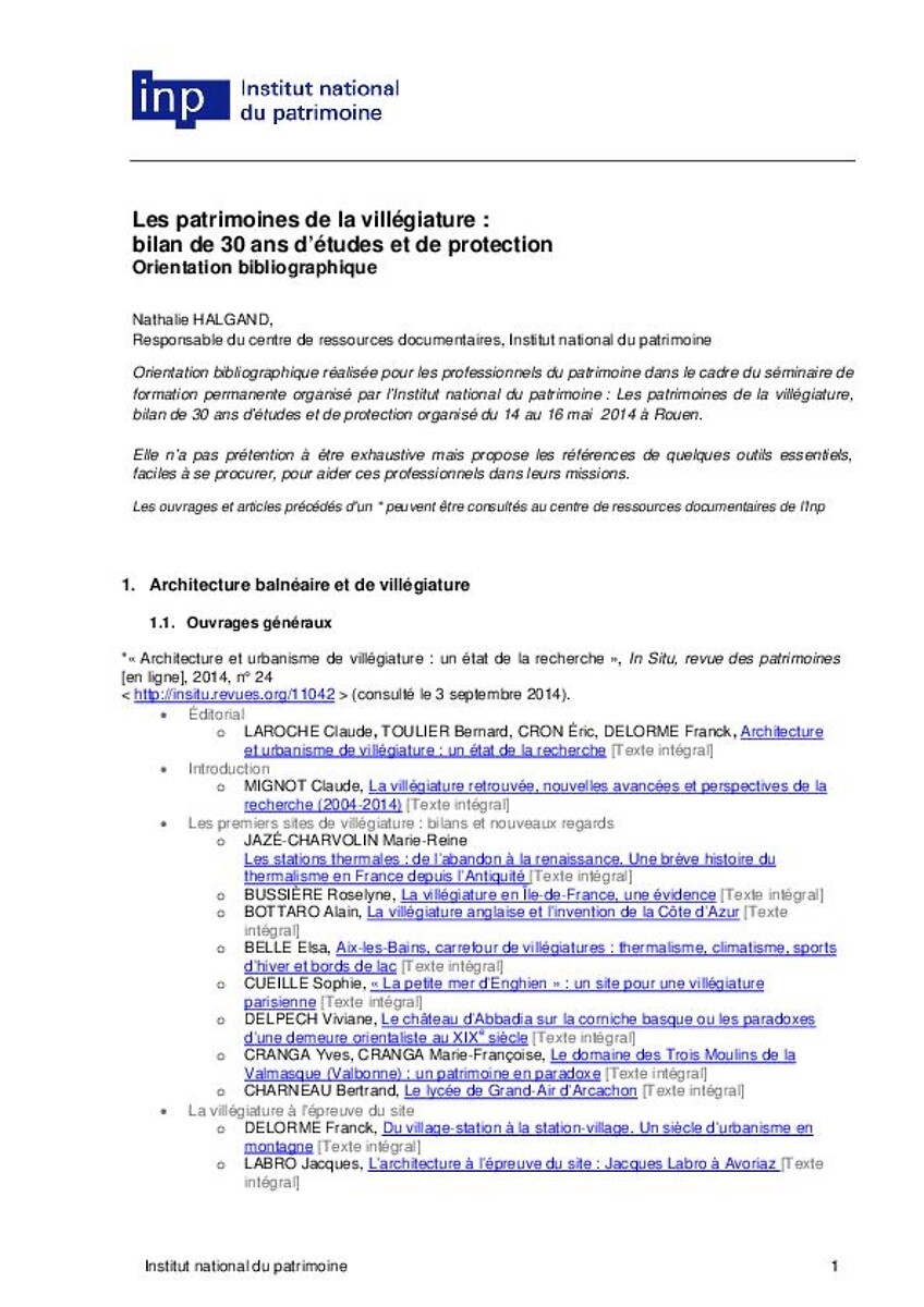 Patrimoines de la villégiature : bilan de 30 ans d’études et de protection