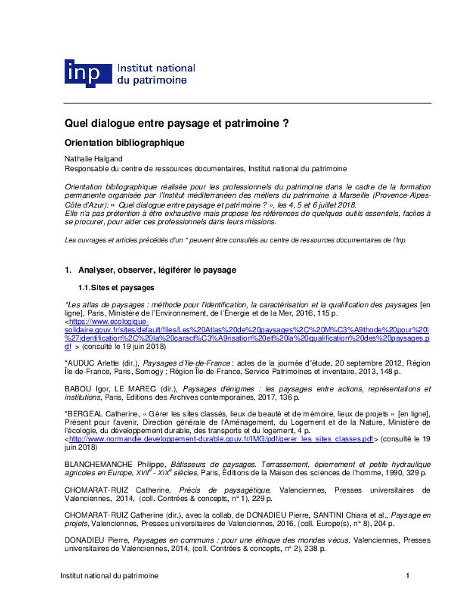 Sites : le paysage comme patrimoine