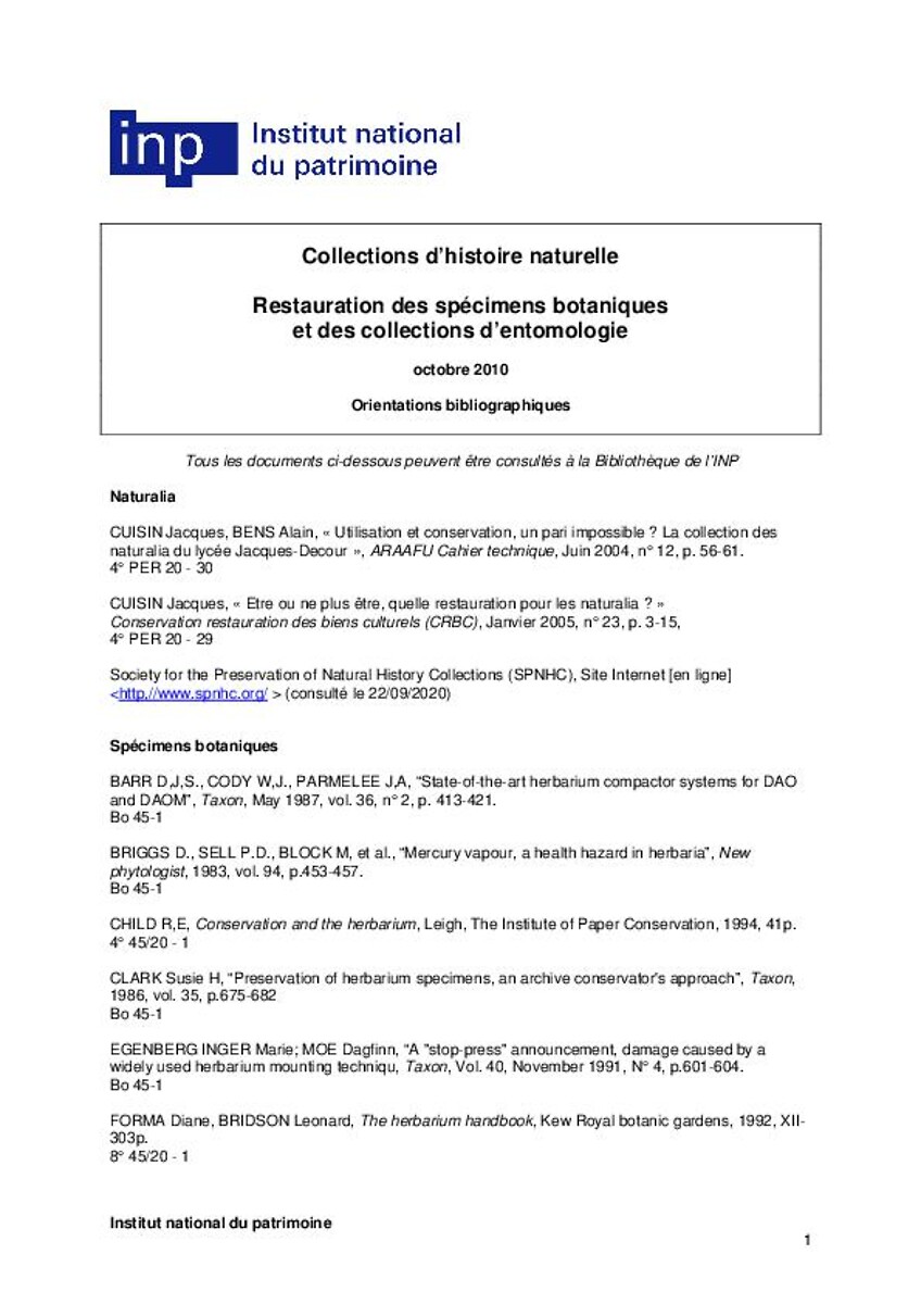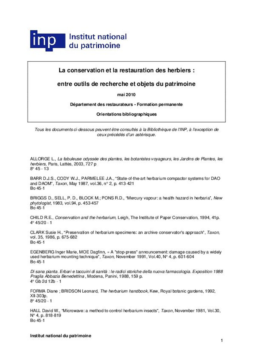 Conservation et la restauration des herbiers : entre outils de recherche et objets du patrimoine