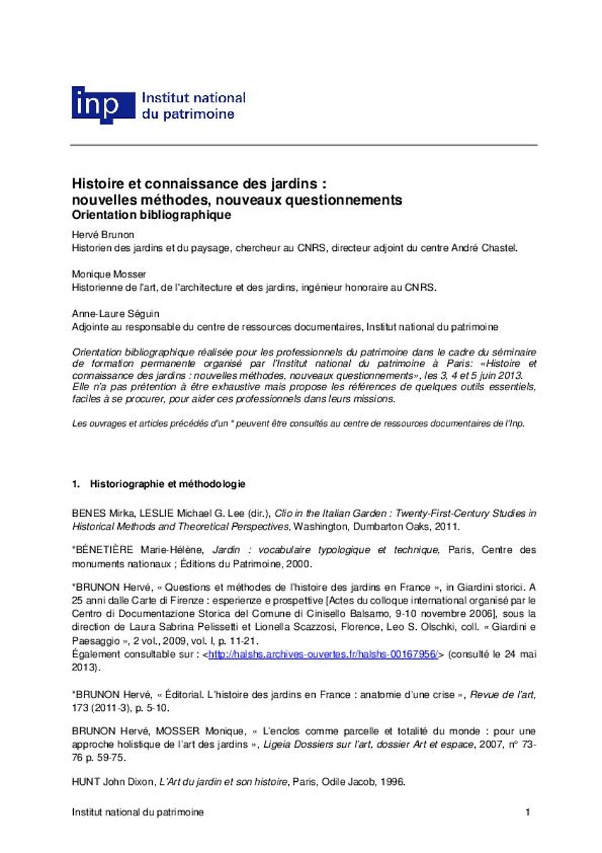 Histoire et connaissance des jardins : nouvelles méthodes, nouveaux questionnements