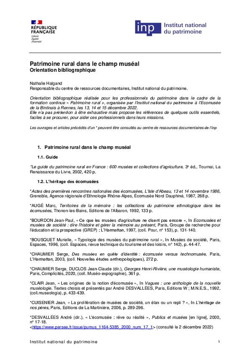 Patrimoine rural dans le champ muséal