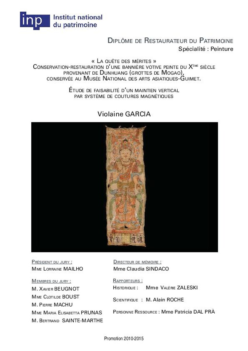 « La quête des mérites », conservation-restauration d'une bannière votive peinte du Xe siècle provenant de Dunhuang (grottes de Mogao), conservée au Musée national des arts asiatiques-Guimet : étude de faisabilité d'un maintien vertical par système de co…