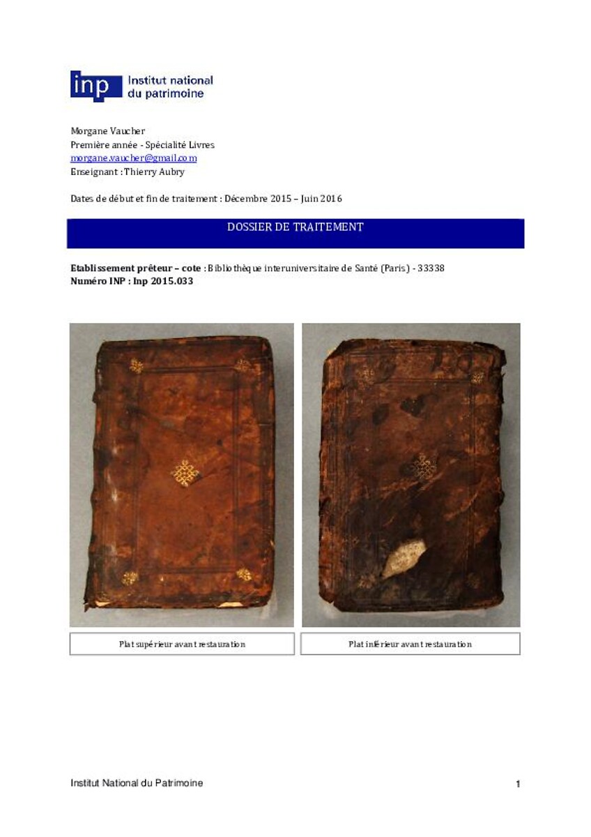 Dossier de traitement ( Collectanorum artis medicae liber...)