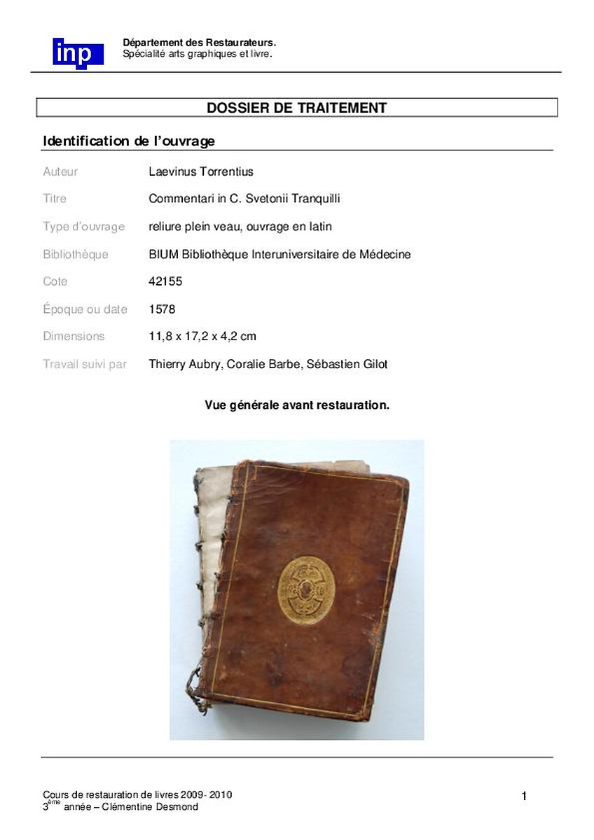 Etude et conservation-restauration d'un incunable couvert de cuir doré repoussé polychrome (1479 ; Paris, Ecole nationale supérieure des beaux-arts) : évaluation des possibilités de nettoyage du cuir par projection de particules douces