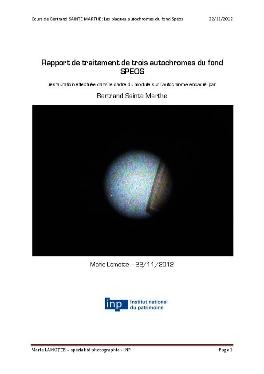 Rapport de traitement de trois autochromes du fond SPEOS [S.n.]