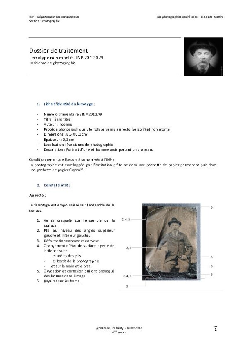 Dossier de traitemennt, Ferrotype non monté (Sans titre)