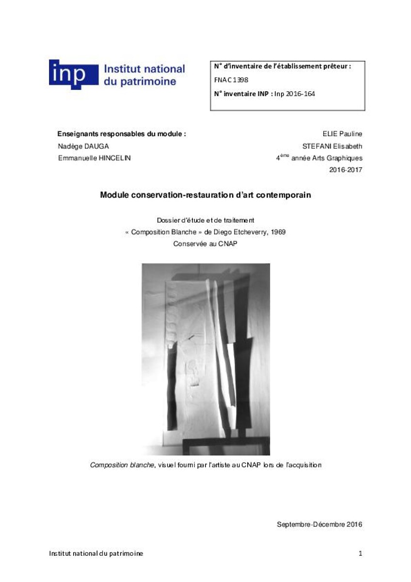 Dossier d’étude et de traitement "Composition blanche" de Diego Etcheverry