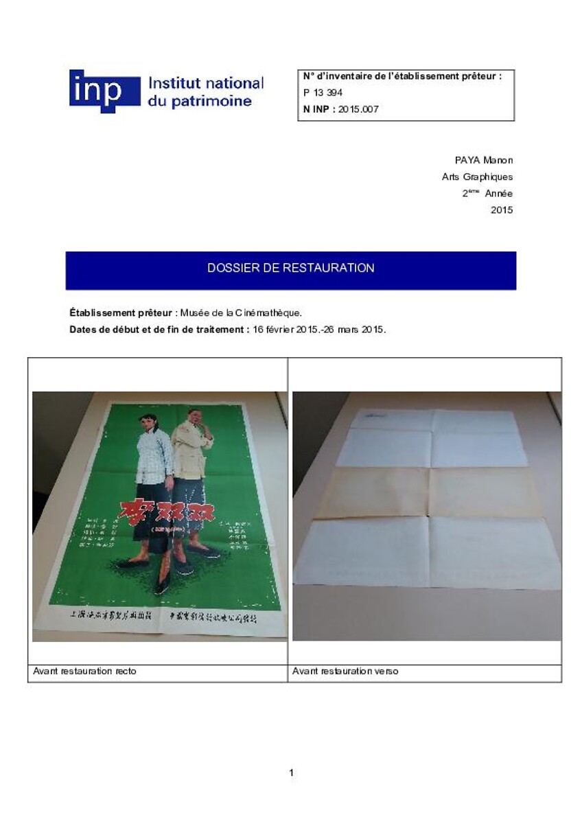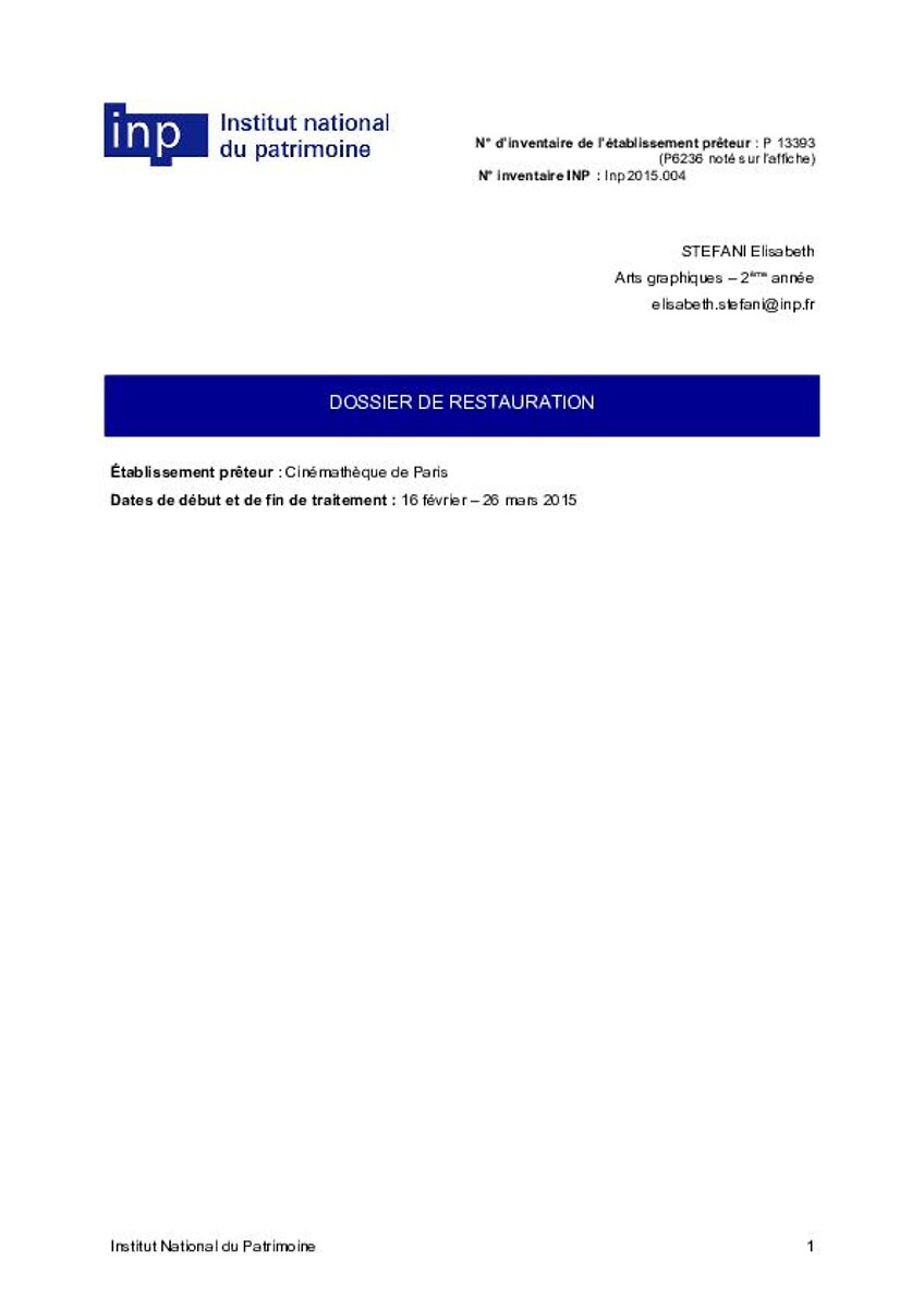 Dossier de restauration, Module restauration d'affiches [Affiches de la Cinémathèque]