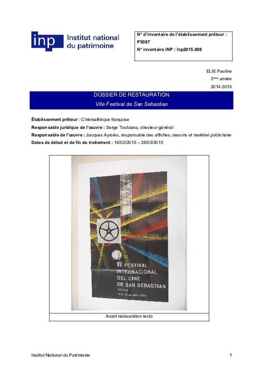 Dossier de restauration-Ville festival de San Sebastian [Affiches de la Cinémathèque]