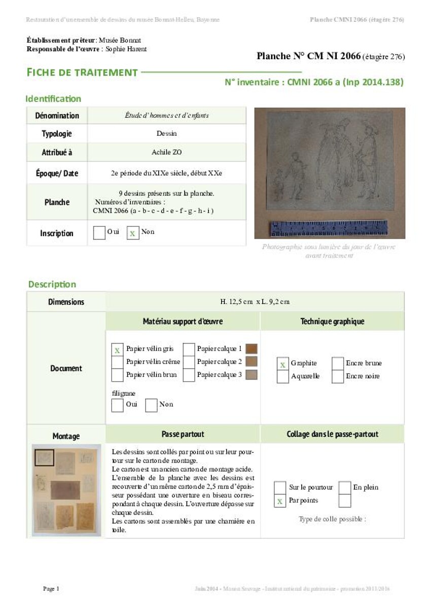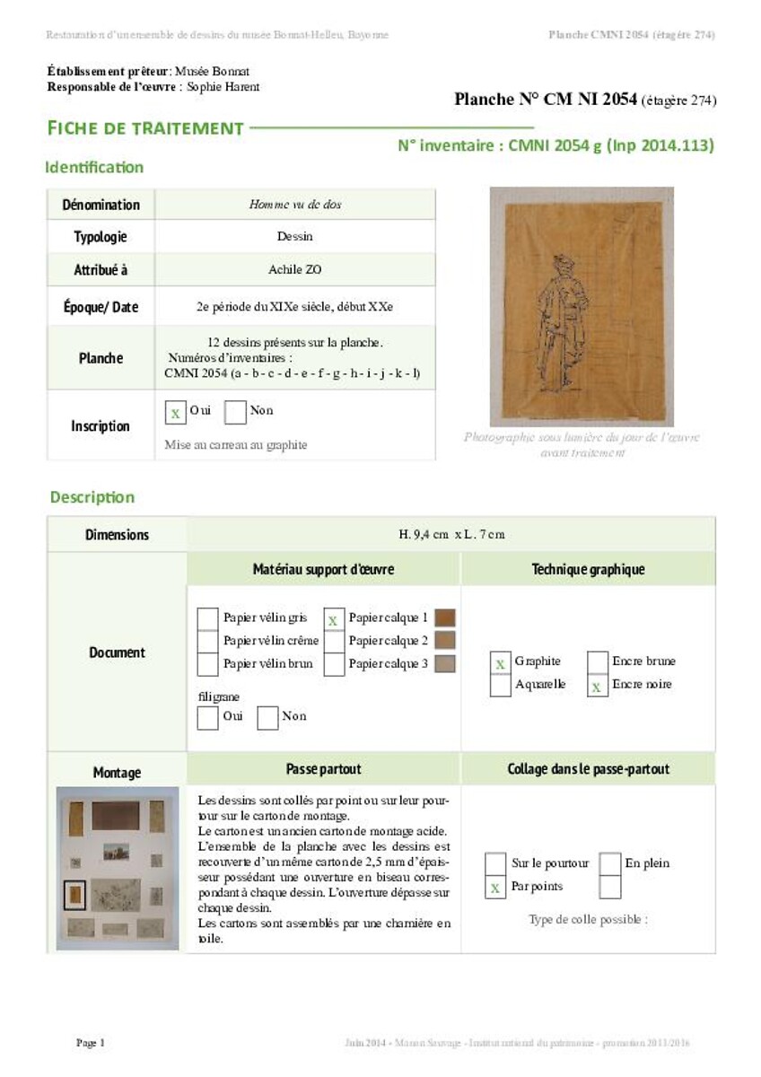 Fiche de traitement ( Un homme et une femme, attribué à Achille Zo)