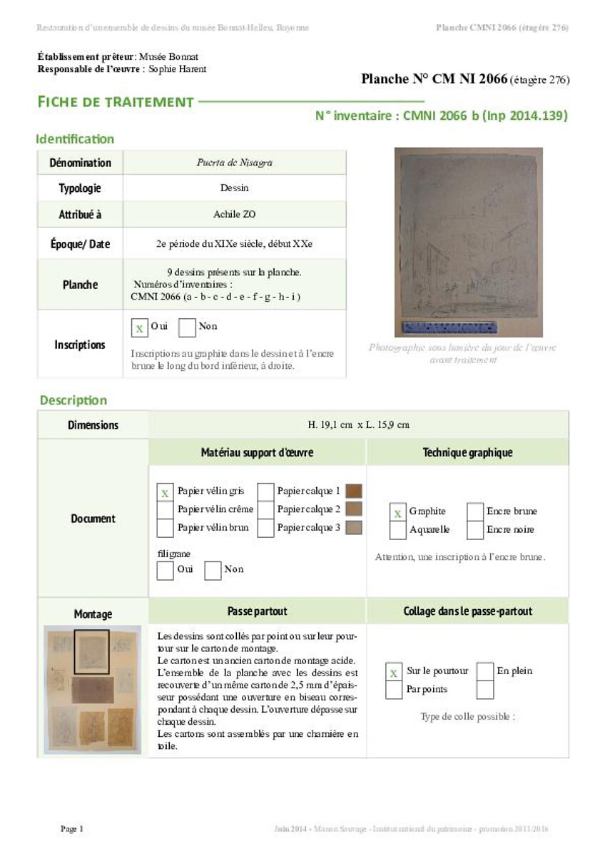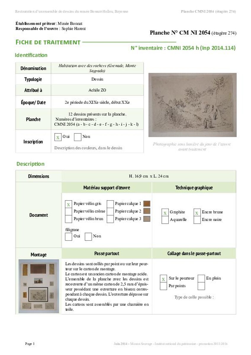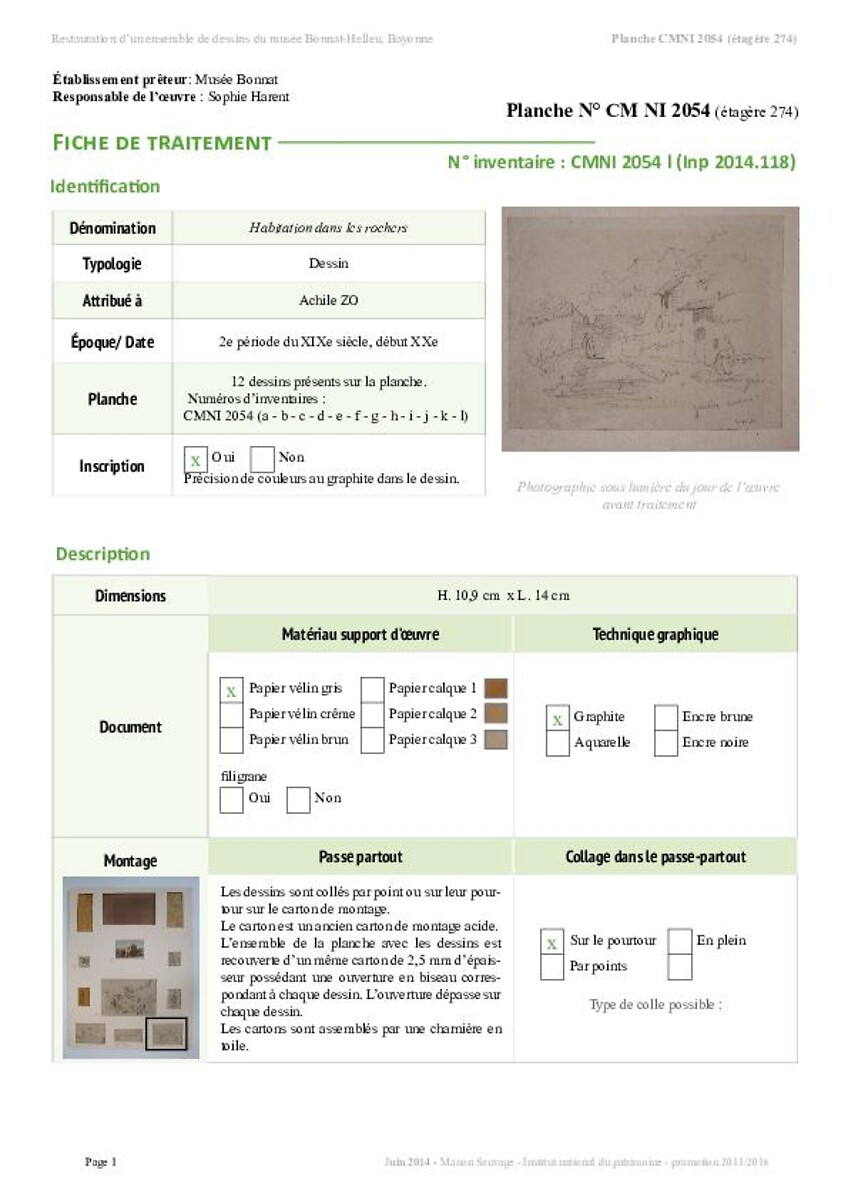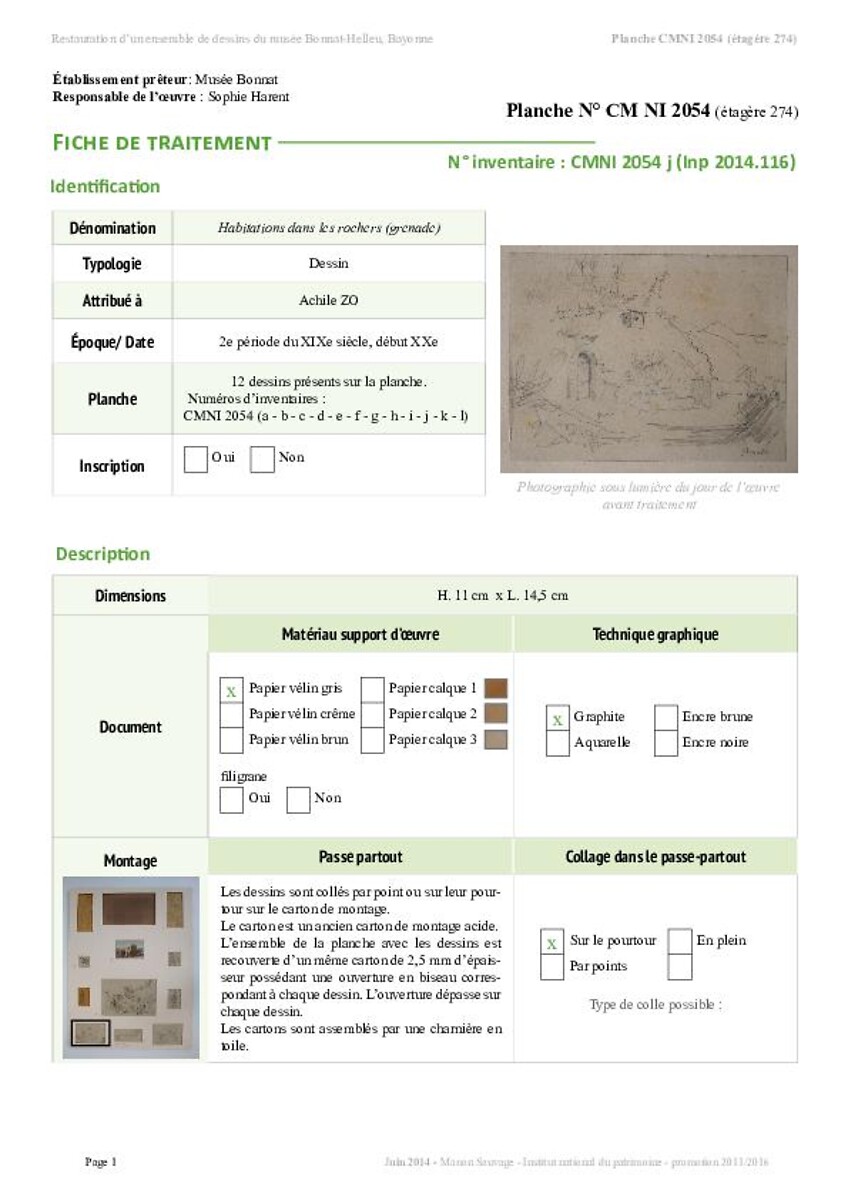 Fiche de traitement (Une caravane de Bohémiens, dessin attribué à Achile ZO)