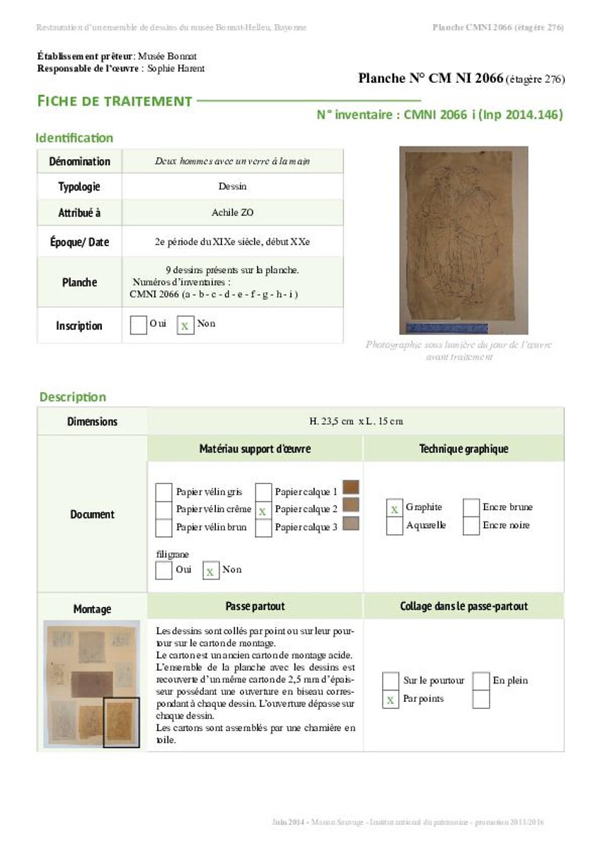 Fiche de traitement (Deux hommes avec un verre à la main attribué à Achile Zo)