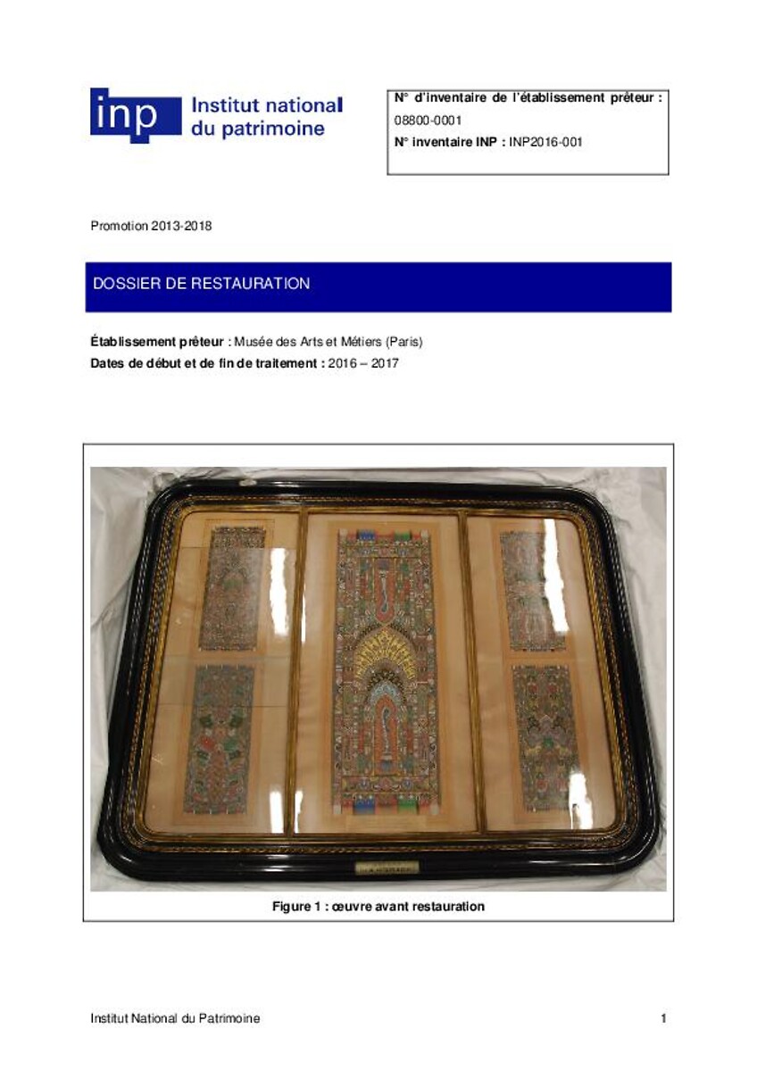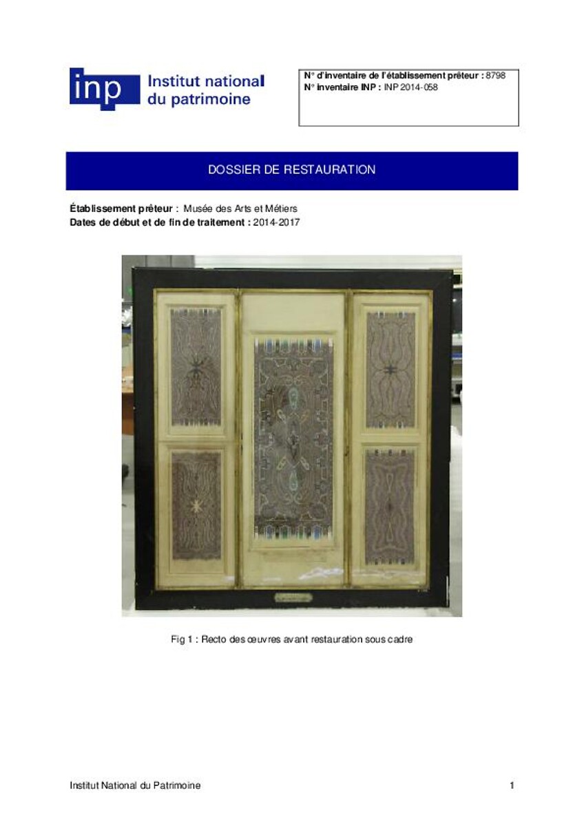 Dossier de restauration (étude de châle attribué à Anthony Berrus)