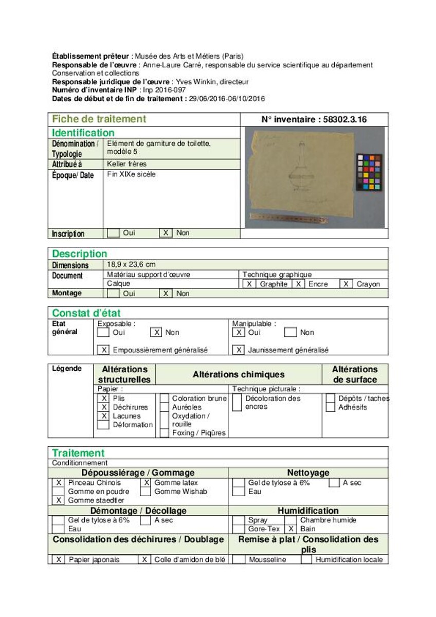 Fiche de traitement (Elément de garniture de toilette, modèle 10)