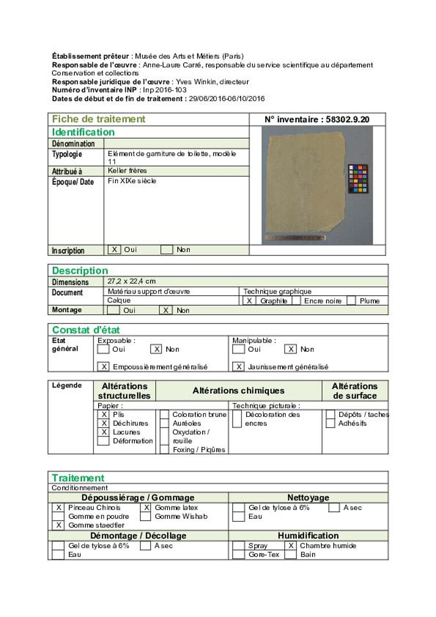 Fiche de traitement (Elément de garniture de toilette, modèle 12)