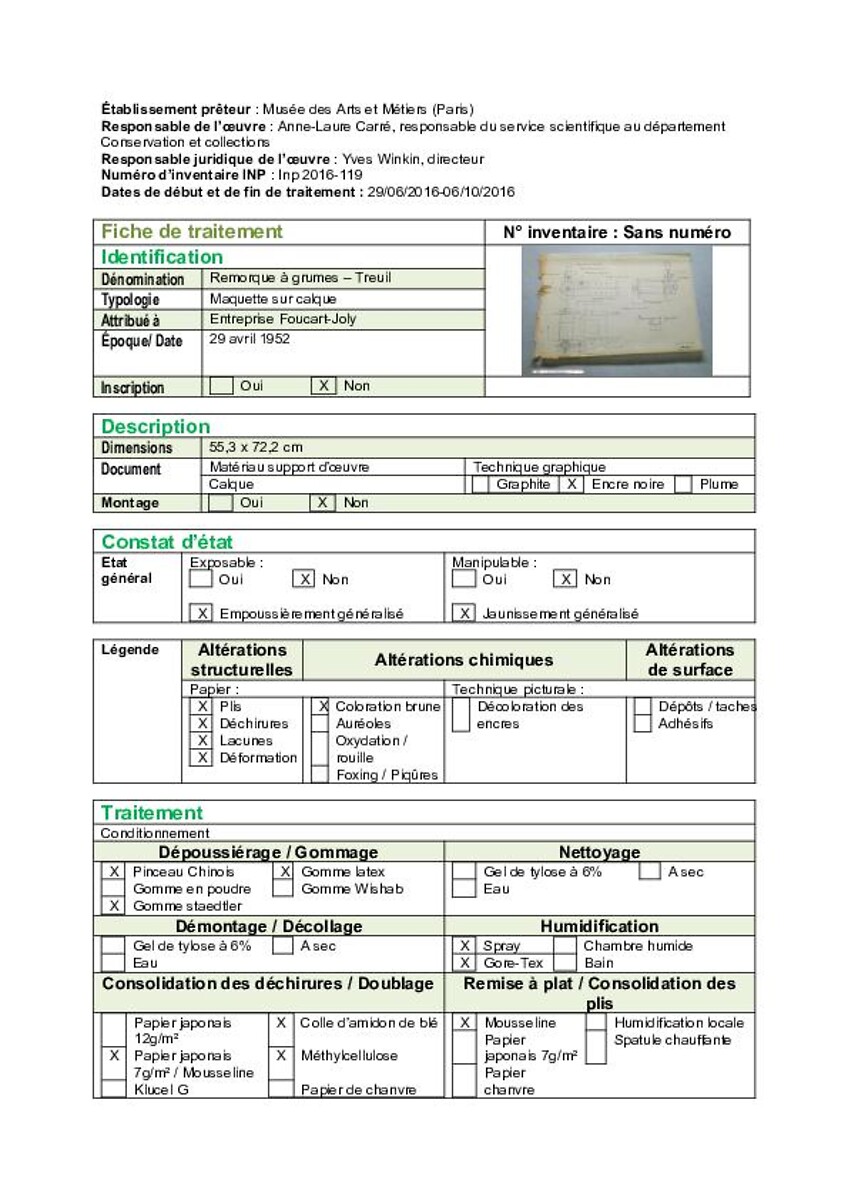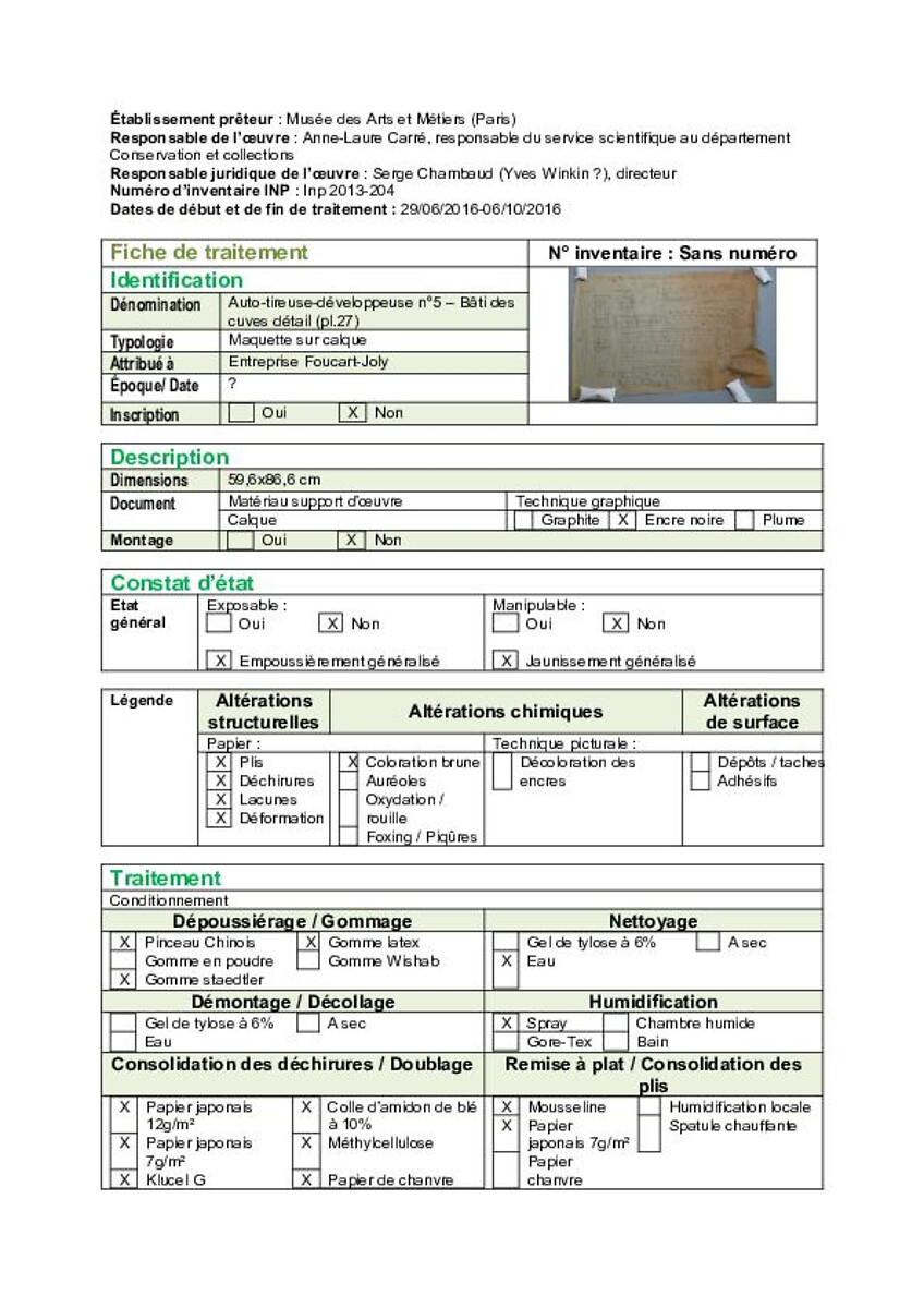 Fiche de traitement (Auto-tireuse-développeuse n°5)