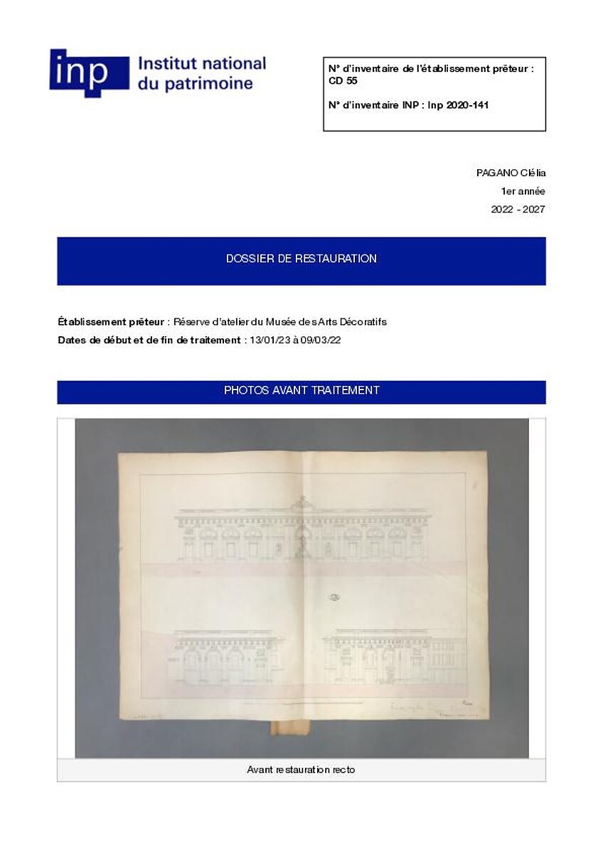 Dossier de restauration : Partie de façade d’un édifice (attribué à Marie-Joseph Peyre)