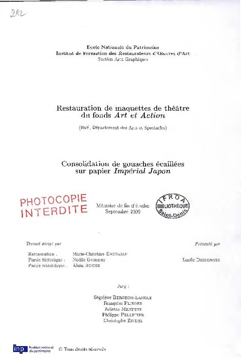 Mémoires de diplôme des restaurateurs du patrimoine