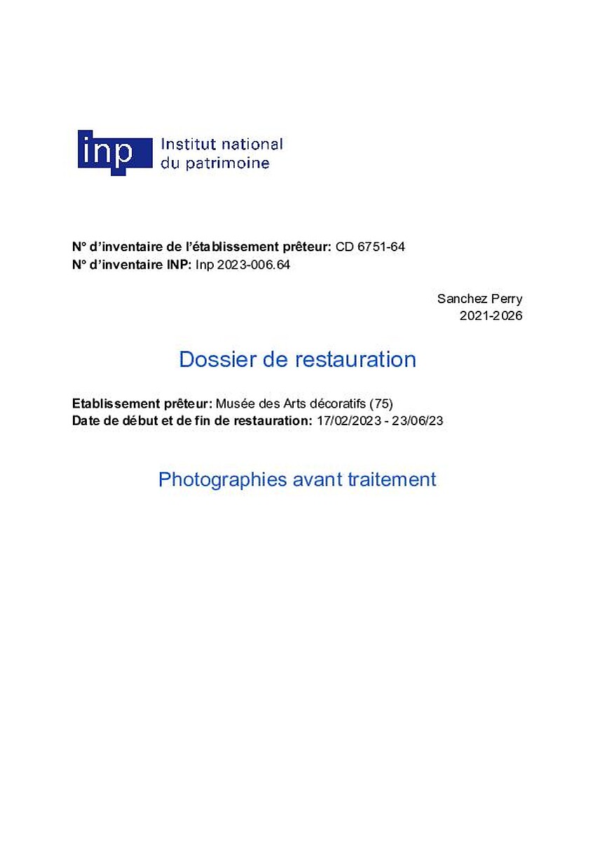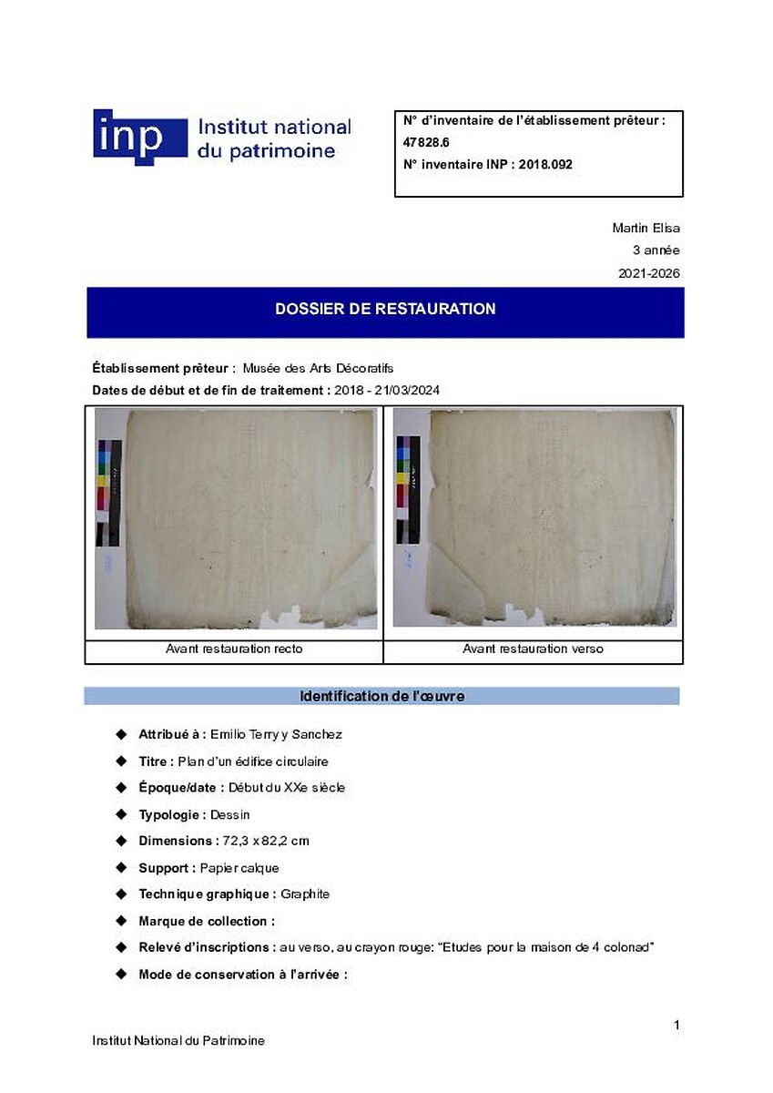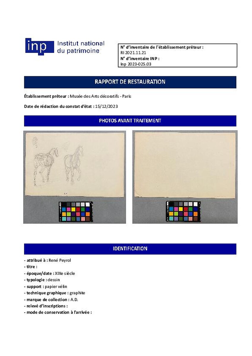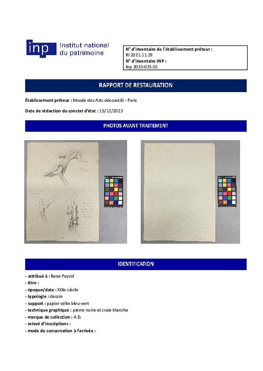 Rapport de restauration. Dessin - Attribué à René Peyrol [18]