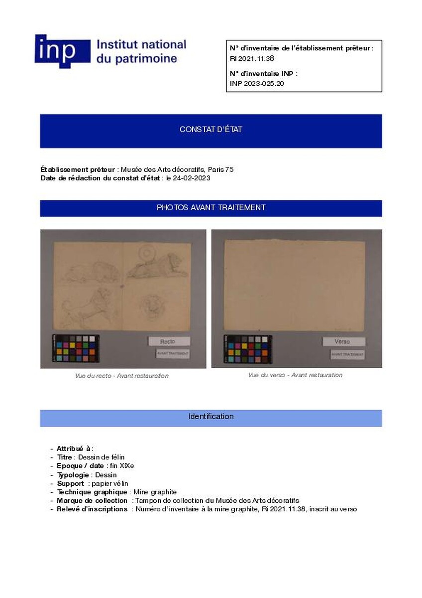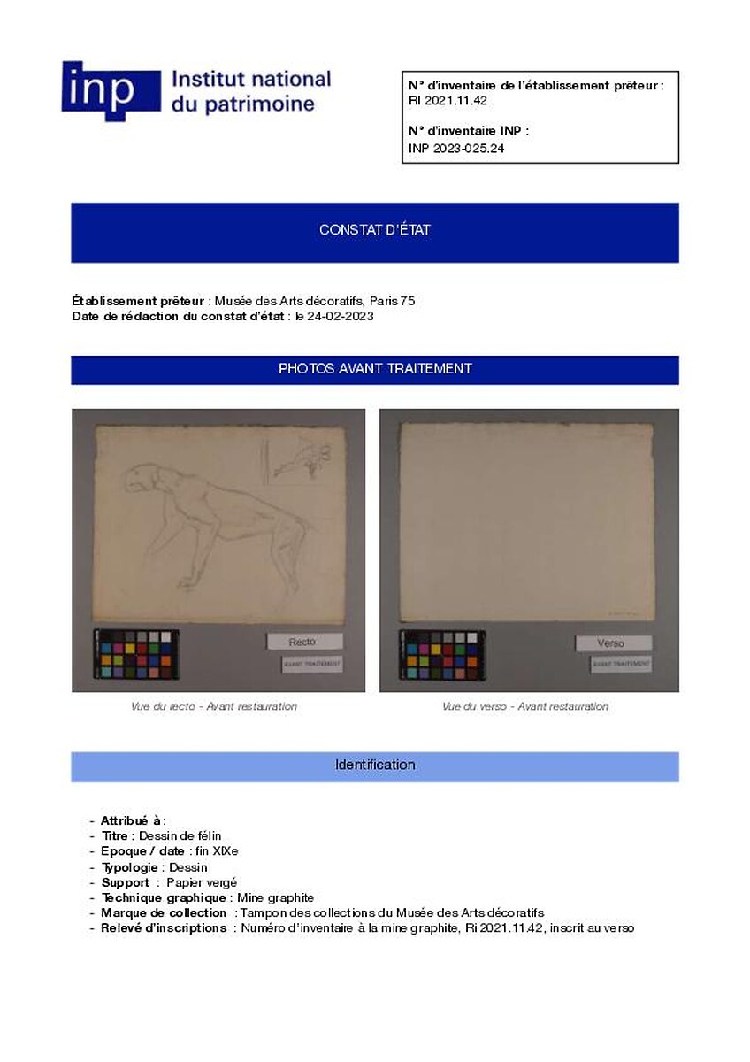 Rapport de restauration : Dessin - Attribué à : René Peyrol [24] Dessin de félin [[N-inc]