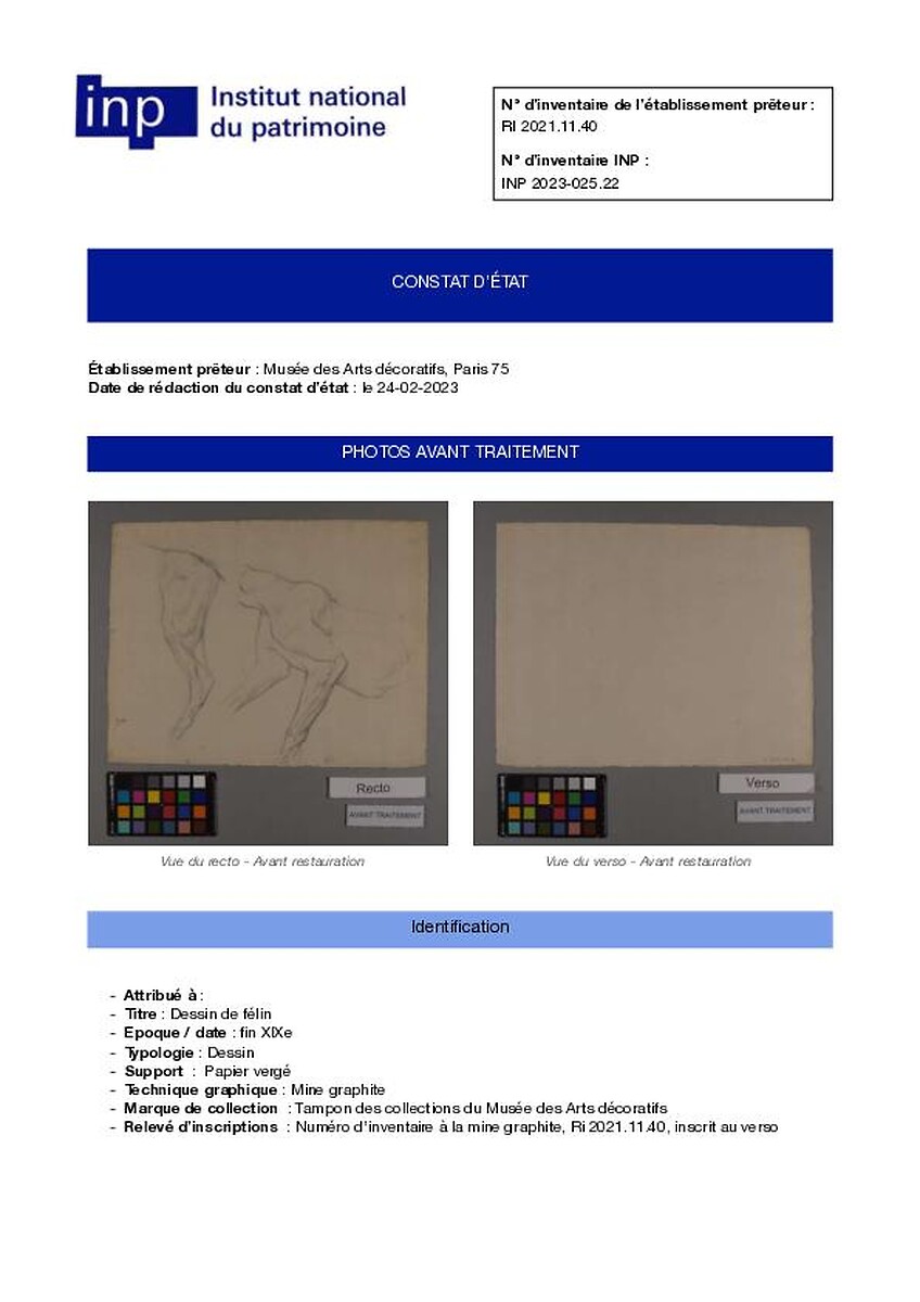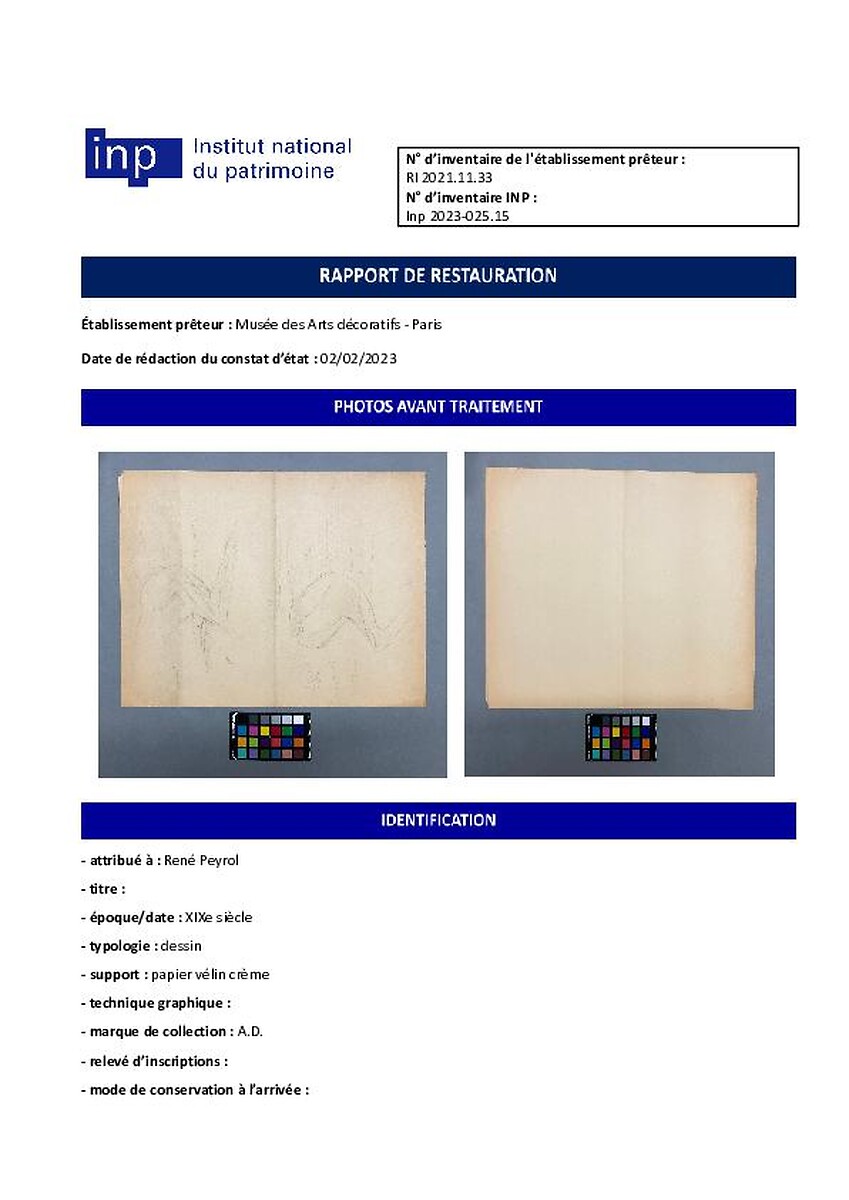 Rapport de restauration : Dessin - Attribué à : René Peyrol [20]