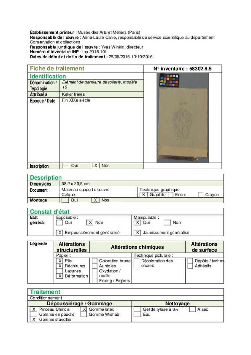 Fiche de traitement (Elément de garniture de toilette, modèle 10)