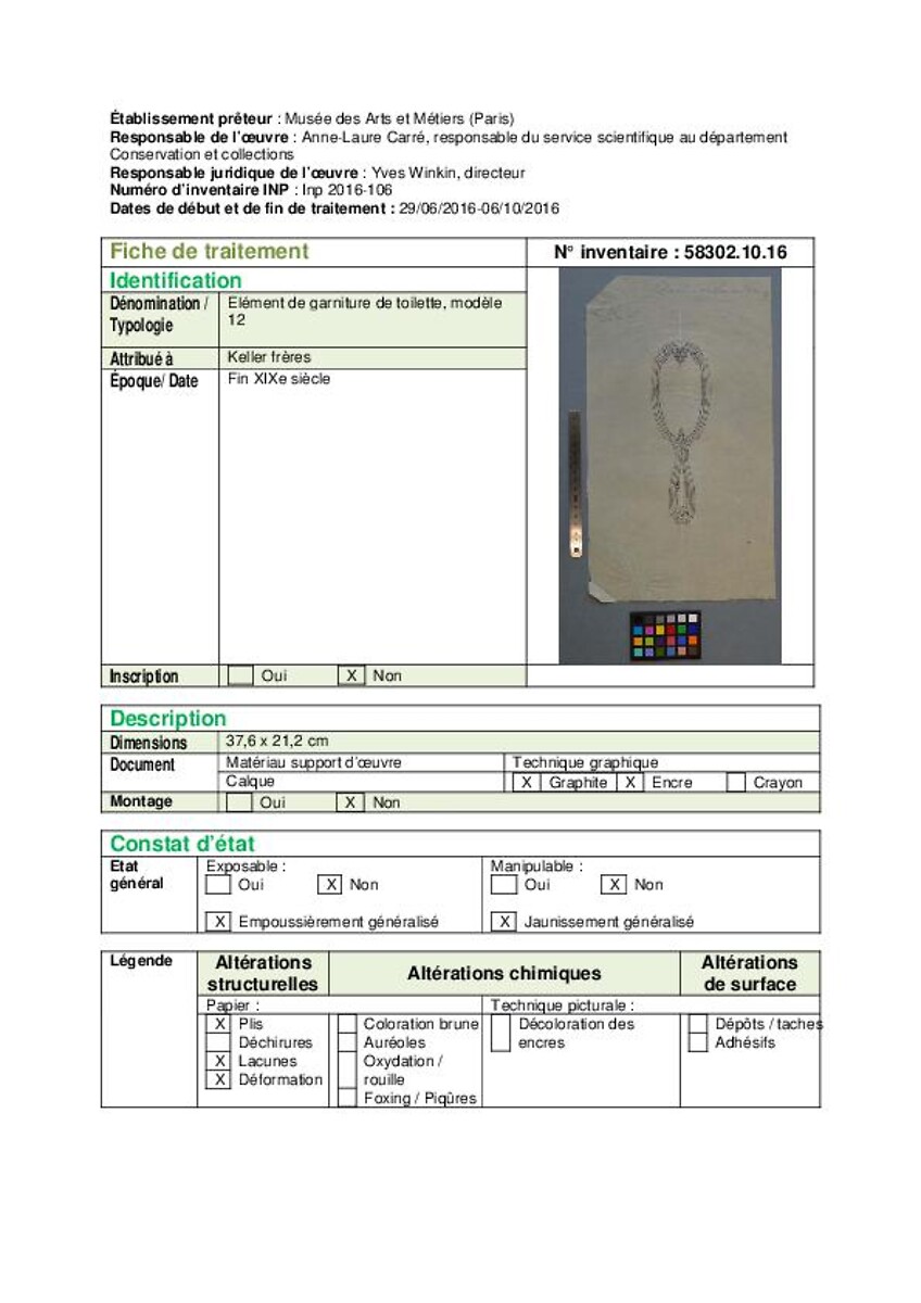 Fiche de traitement (Elément de garniture de toilette, modèle 12)