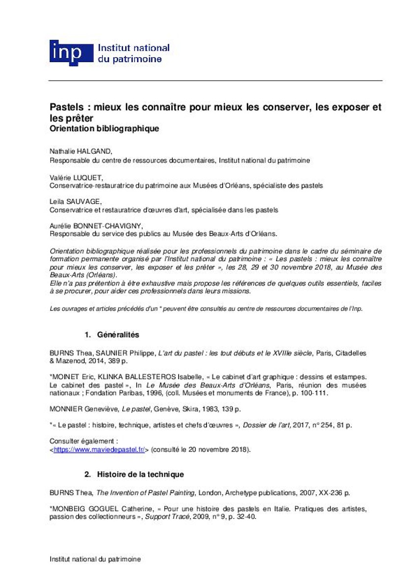 Pastels : mieux les connaître pour mieux les conserver, les exposer et les prêter