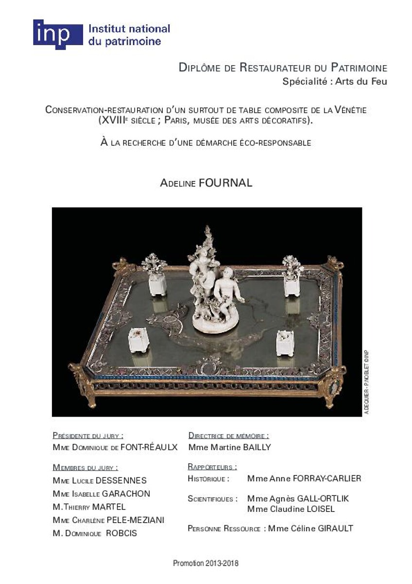 Conservation-restauration d'un surtout de table composite de la Vénétie (XVIIIe siècle ; Paris, musée des arts décoratifs) : à la recherche d'une démarche éco-responsable