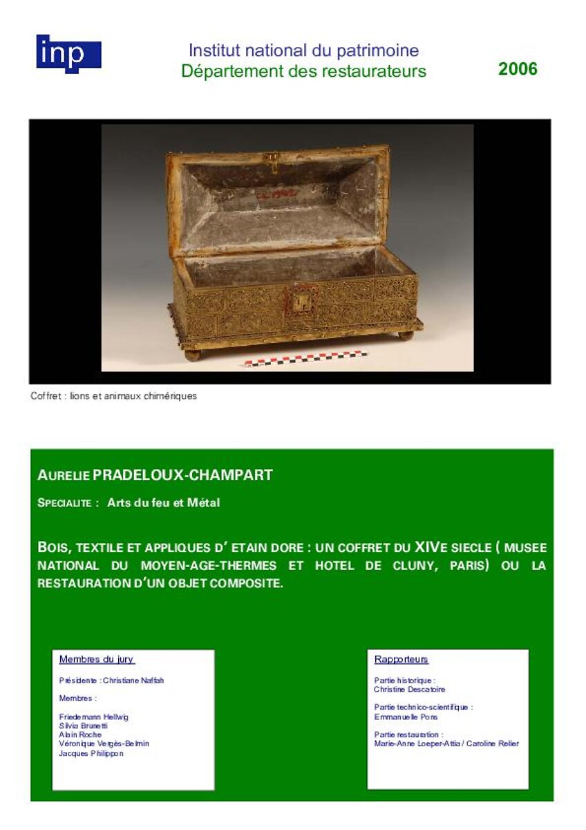 Bois, textile et appliques d'étain doré : un coffret du XIVe siècle (Musée national du Moyen Age - Thermes et hôtel de Cluny, Paris) ou la restauration d'un objet composite