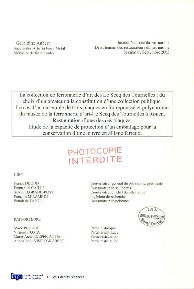 La collection de ferronnerie d'art des Le Secq des Tournelles : du choix d'un amateur à la constitution d'une collection publique; Le cas d'un ensemble de trois plaques en fer repoussé et polychrome du musée de la ferronnerie d'art-Le Secq des Tournelles…