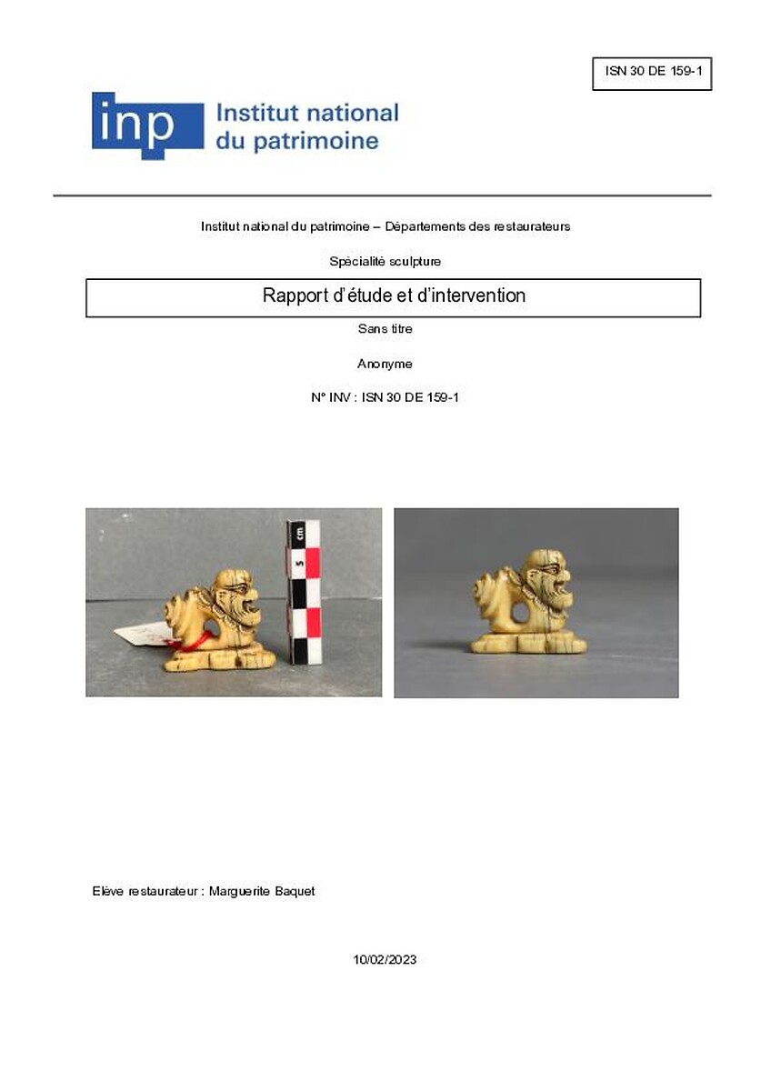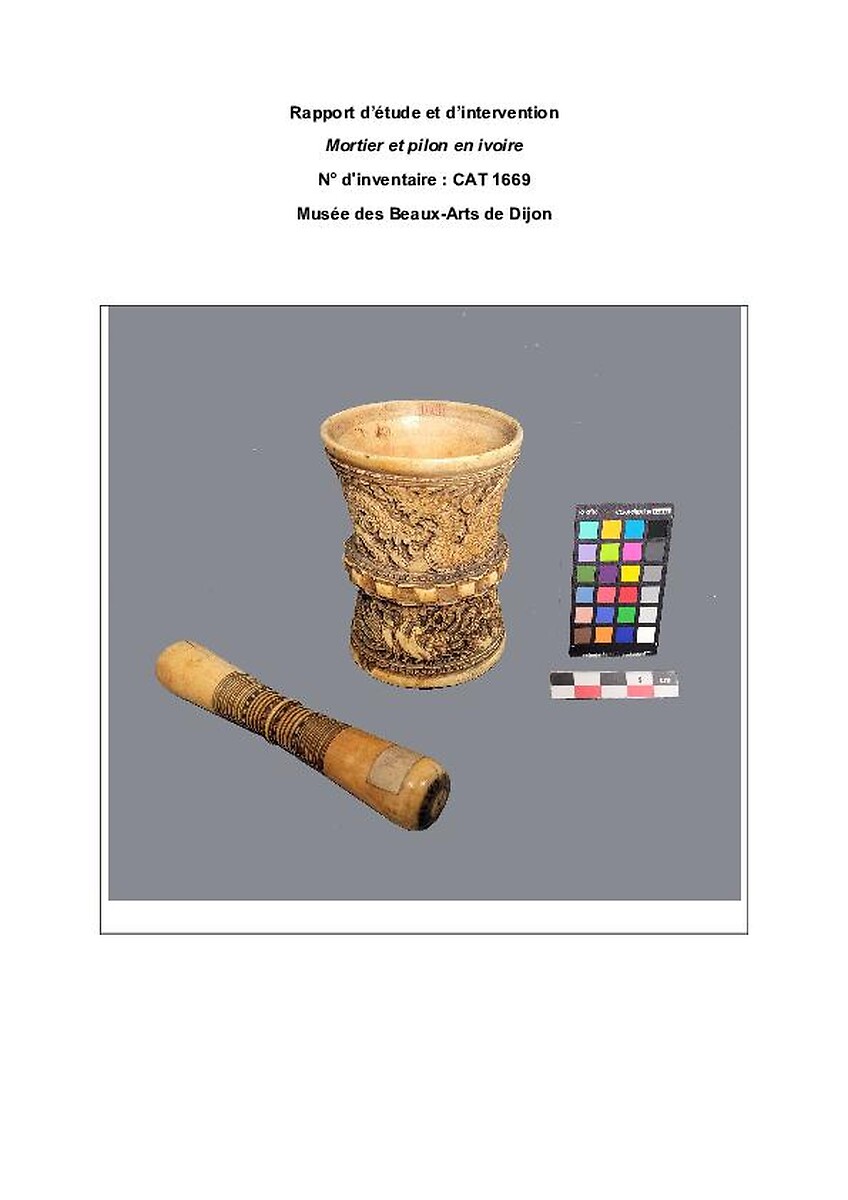 Rapport d’étude et d’intervention : Mortier et pilon ivoire [S. n.]