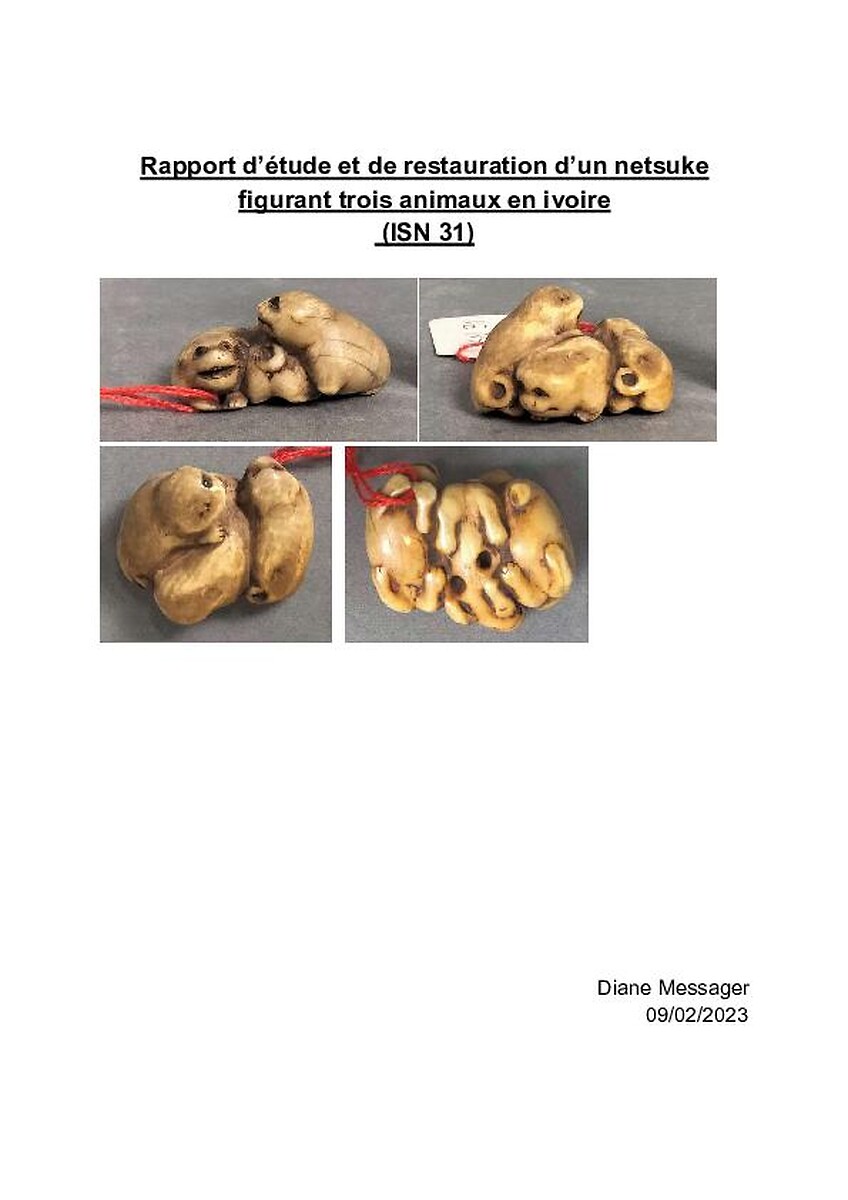 Rapport d’étude et de restauration d’un netsuke figurant trois animaux en ivoire
