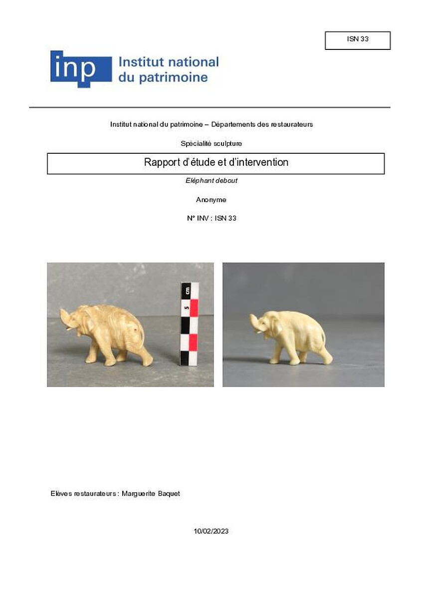 Rapport d’étude et d’intervention : Mortier et pilon en ivoire [Pas de N° INP]