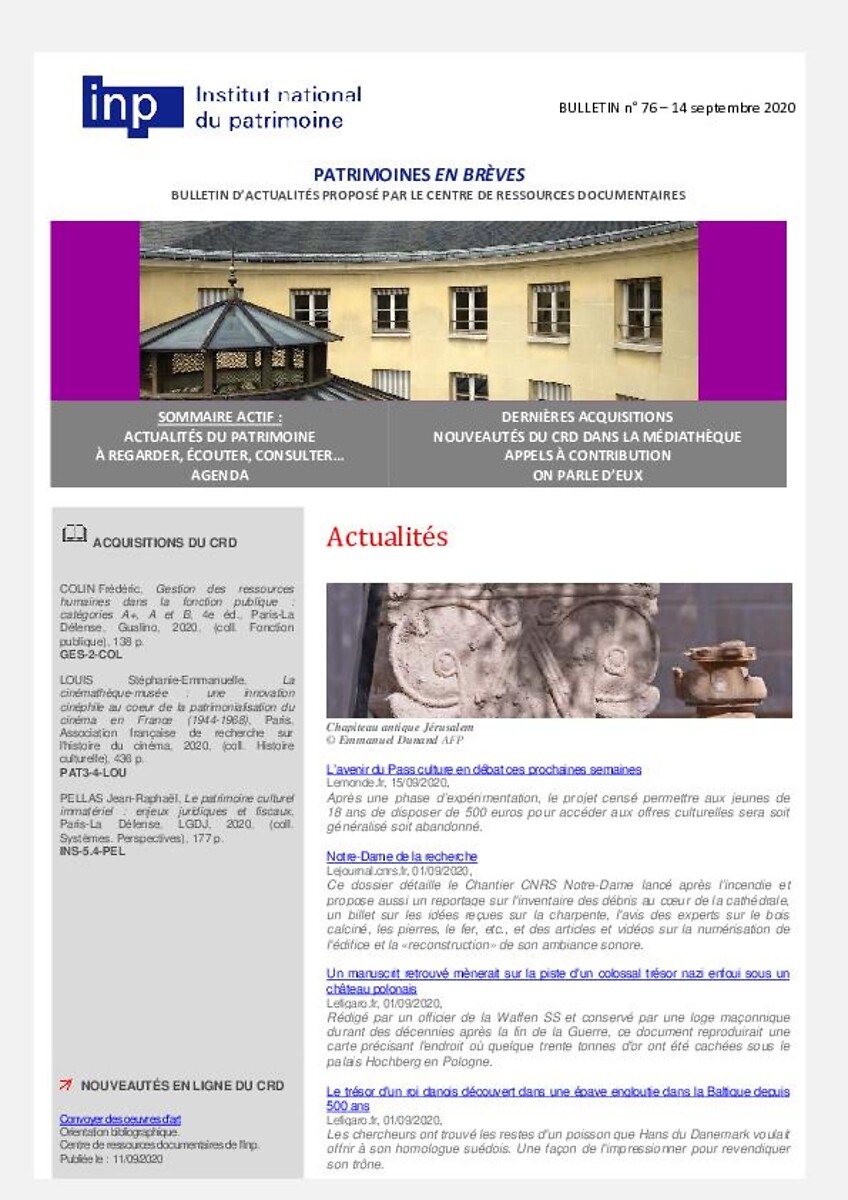 Patrimoines en brèves n° 76